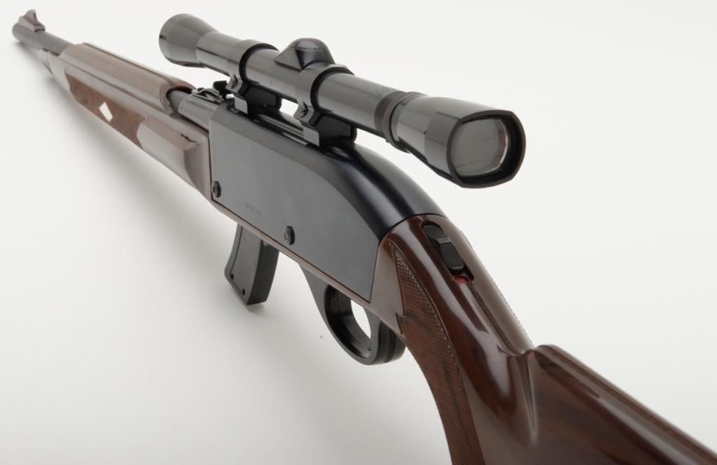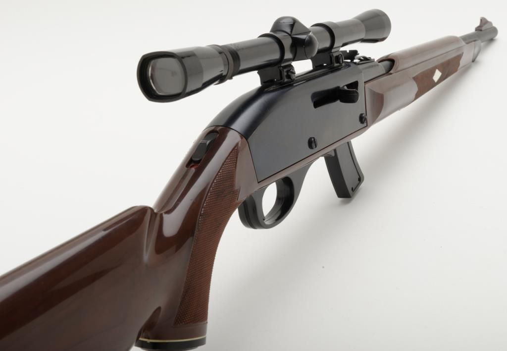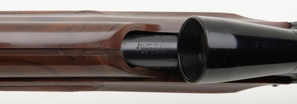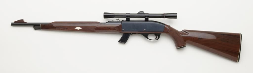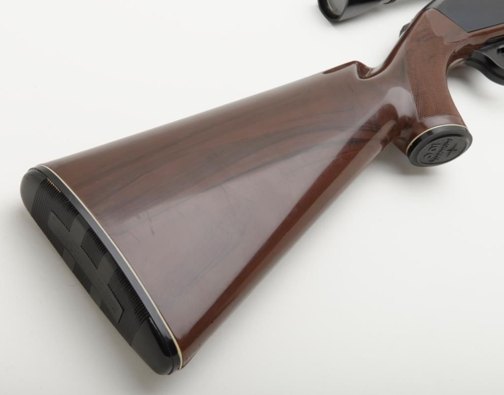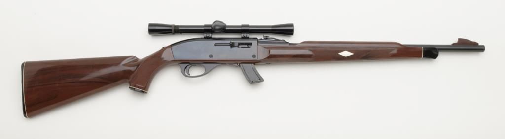 Remington Mohawk Model 10C, .22 caliber semi-automatic rifle mounted with Weaver scope on rail type mounts in original frame grooves. The condition is very good plus to near fine used condition. 90% to 95% overall. These Mohawk Remington’s are rapidly increasing in value and desirability. Est.: $175-$350