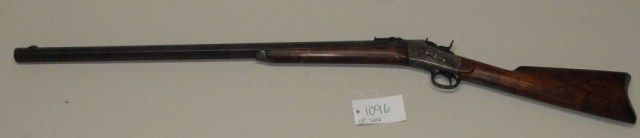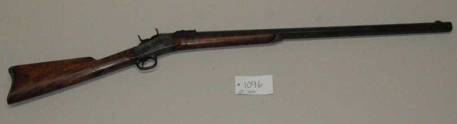 Remington No. 1 Rolling Block Sporting rifle, .50 cal., 32” heavy octagon barrel, blue and case hardened finish, wood stocks, flip-up adjustable rear sight with an old U.S. silver coin front sight dated 1842, serial number3619. This very desirable gun is in overall very good condition showing scattered traces of original blue finish on barrel that has gone mostly to a plum blue color, some scattered spots of erosion; nothing serious,fine bore, crisp action, receiver has gone to a frosty silver toning with some pin prick pitting; stocks are overall very good showing even wear and some scattered old mars from carry and storage; a very desirable Sportingrifle in .50 caliber. Est.: $3,500-$7,000.