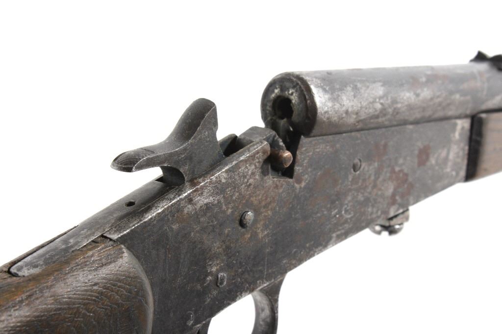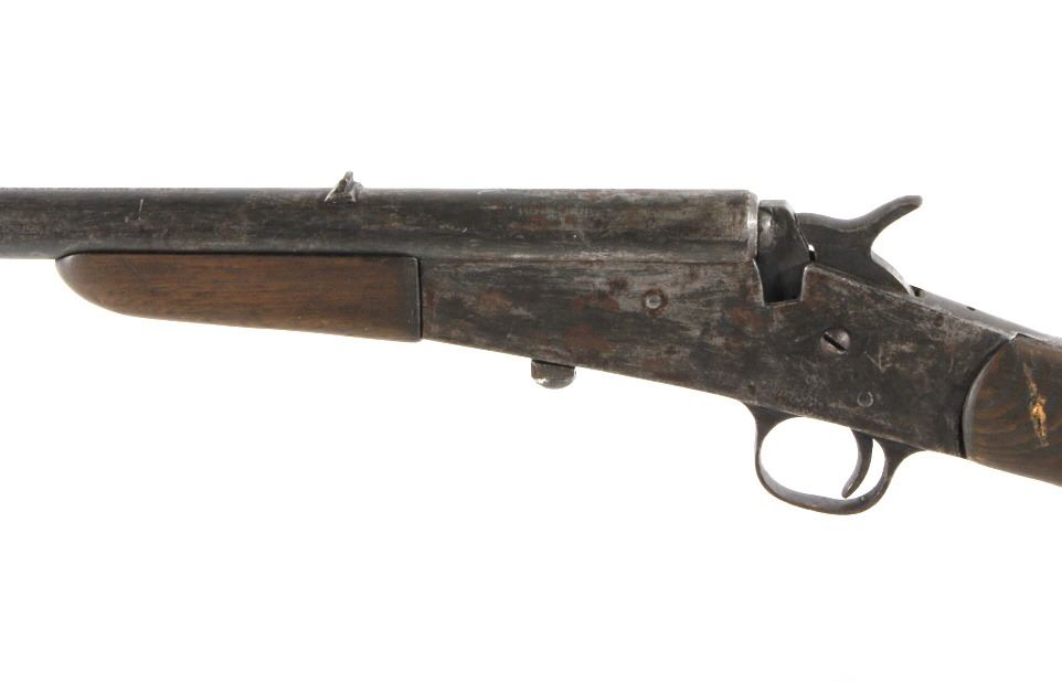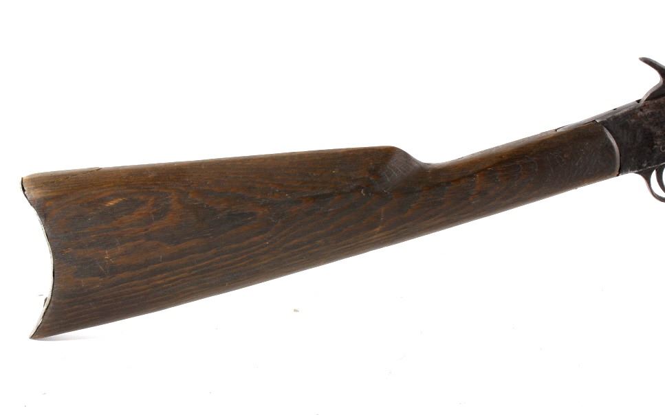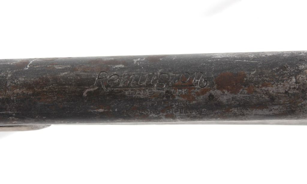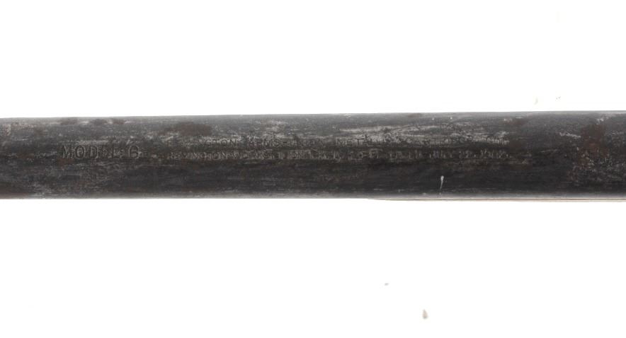 For your consideration is a Remington No. 6 falling block rifle. This No. 6 features a 20 1.4" round barrel with dovetailed front and rear sights. The straight grain walnut stock a and fore grip have dents and ding associated with age. The case hardened receiver and blue'd barrel have lost their finish over time and have developed a full patina. The barrel is marked "Model 6 - Remington Arms Union Metallic Cartridge Co. - Remington Works Ilion, NY U.S.A. Patented July 22. 1902." The rifle is chambered in .22 shot, long or long rifle. This is a single shot rolling block style action. Serial Number: S300555. This firearm qualifies as a Curio & Relic Firearm, and requires FFL Transfer or NICS Background Check.