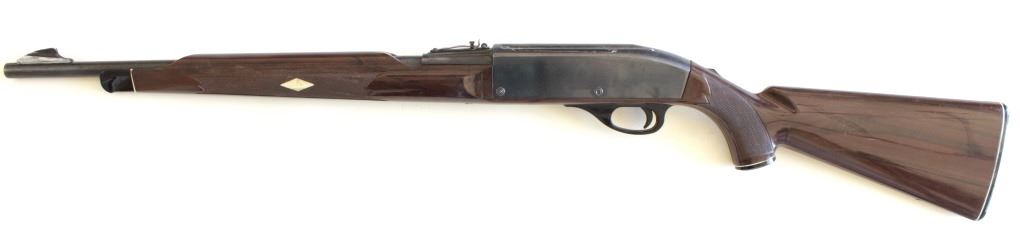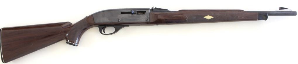 Remington Nylon 66 .22 cal. NVSN semi auto with 19 1/2" barrel, brown nylon stock with black Remington buttplate. Rifle remains in fair condition, NO cracks or repairs to stock, ID number lightly scratched on top of receiver below th scope, very light piwith 19 1/2" barrel, brown nylon stock with black Remington buttplate. Rifle remains in fair condition, NO cracks or repairs to stock, ID number lightly scratched on top of receiver below th scope, very light pin prick pitting starting on both sides of receiver, sides of front sight have been sanded to silver. Good action and bore with thinning rifling. Made in 1963.From old St. Louis collection. FFL/Modern. Est. 175-250
