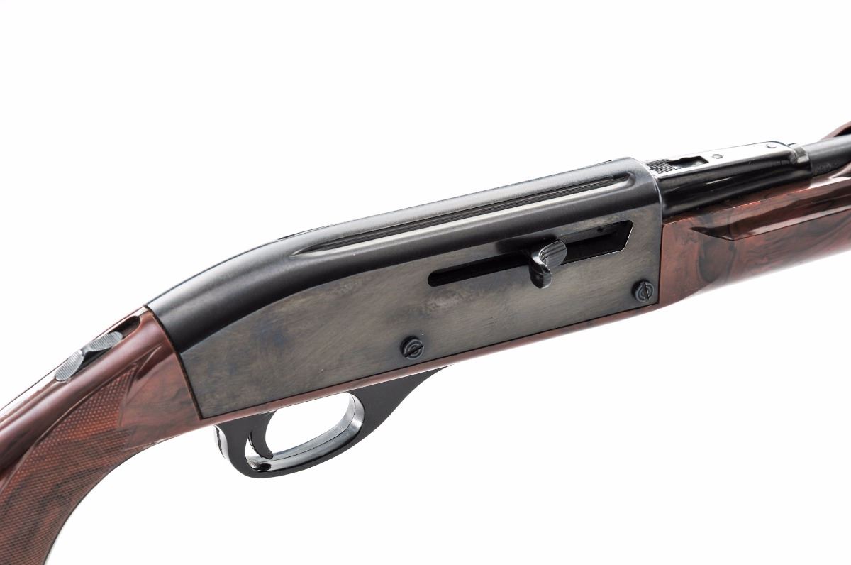 Remington Nylon 66 Auto-Loading Semi-Automatic Rifle, #A2277726, .22 LR cal., 19-1/2'' barrel, blue finish, checkered pistol-grip brown nylon stock, only one decorative inlaid white diamond is present at forend, with original Nylon 66 grip cap, black forend tip, factory Remington black plastic buttplate, standard front sight (missing rear sight). Condition is about fine retaining approx. 97% blue. Metal surfaces and stock with general light scratches and marks from handling. Action and bore are excellent. Est.: $150-$300. (Modern)