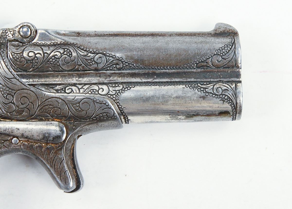 Remington O/U .41cal derringer Overall in very good vintage condition with factory engraving. and mother of pearl grips. Very low serial number C&R Eligible S/N: 847