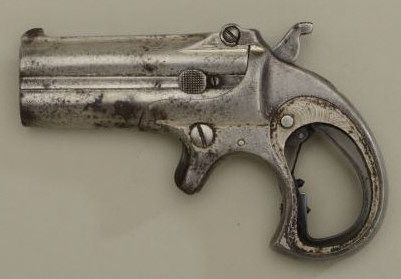 Remington O/U Derringer, .41 cal., 3” barrels, nickel finish, missing grips, #2. This gun is in ov