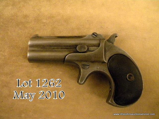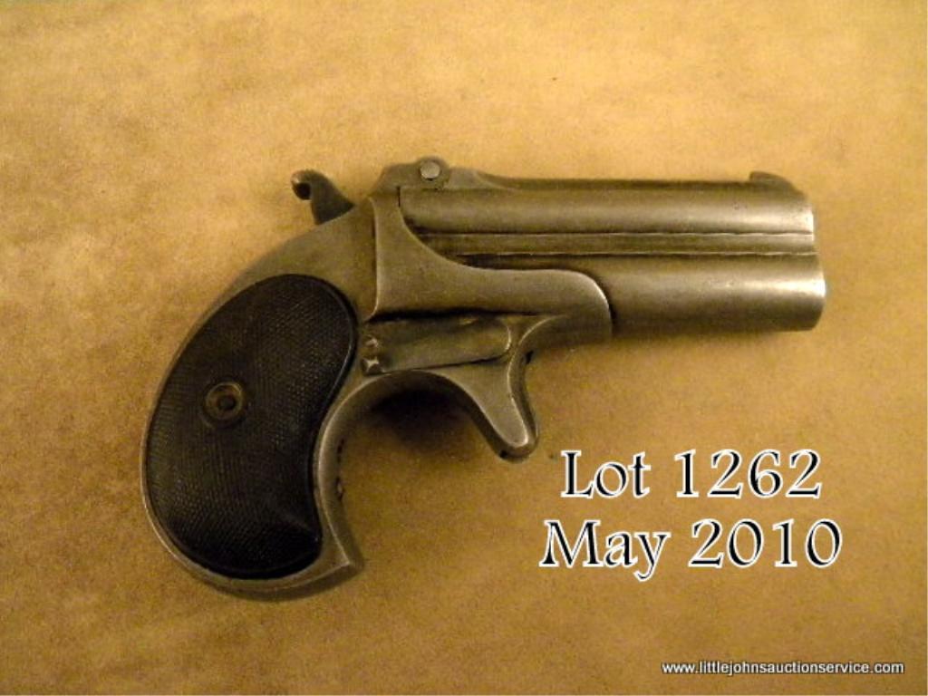 Remington O/U last series .41 caliber rimfire derringer with UMC barrel address, traces of original blue, hard rubber grips, #L92031. The derringer remains in good condition with good edges and markings, traces of blue, good action,good grips, bore is slightly rough; must be registered; made post-1900. Est.: $250-$500.