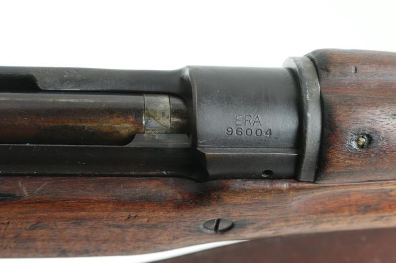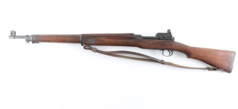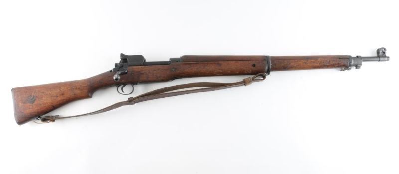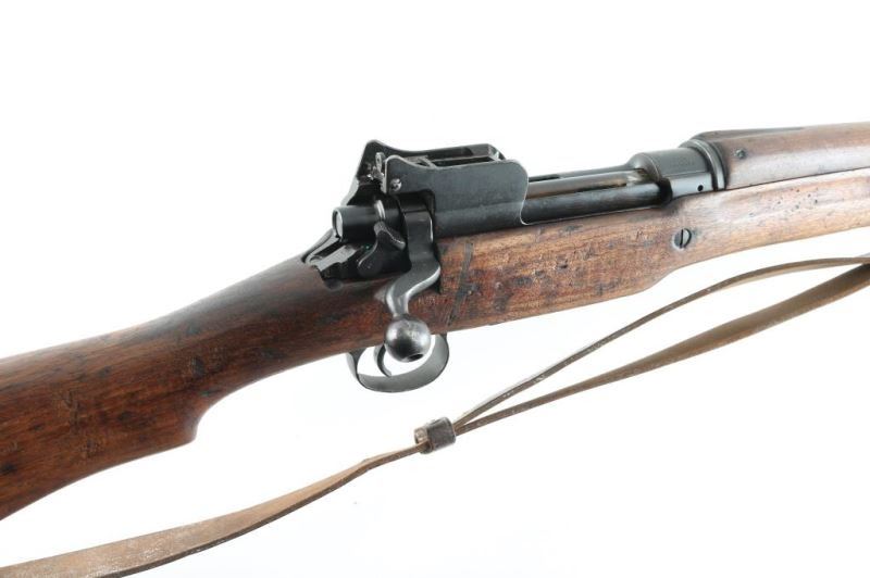 'No 3 Mk 1e' British military magazine fed bolt action service rifle chambered in .303 British. Manufactured in Eddystone, Pennsylvania by the Remington Arms for use during WWI. "ERA" stamped on right chamber. British proofs present. Features dog-leg bolt handle, protected blade front sight, folding ladder rear sight with peep apertures, approx 26 inch barrel, manual safety, sling swivels, storage compartment in butt, blued finish, wood stock with handguard. Bore is good condition with strong rifling. Retains 80% finish on metal parts, showing bare metal on sharp edges, where handled, and where moving parts rub. Stock is very good with numerous scratches/dents. Brass disc removed ,wood plug inserted. Volley sight disc present, but missing sights. Correct British sling attached. NRA Condition-Good. C&R firearm.