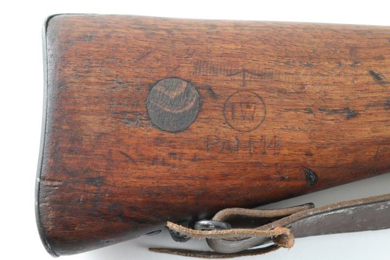 GOOD: Some minor replacement parts; metal smoothly rusted or lightly pitted in places, cleaned or re-blued; principal letters, numerals and design on metal legible; wood refinished, scratched bruised or minor cracks repaired; in good working order.