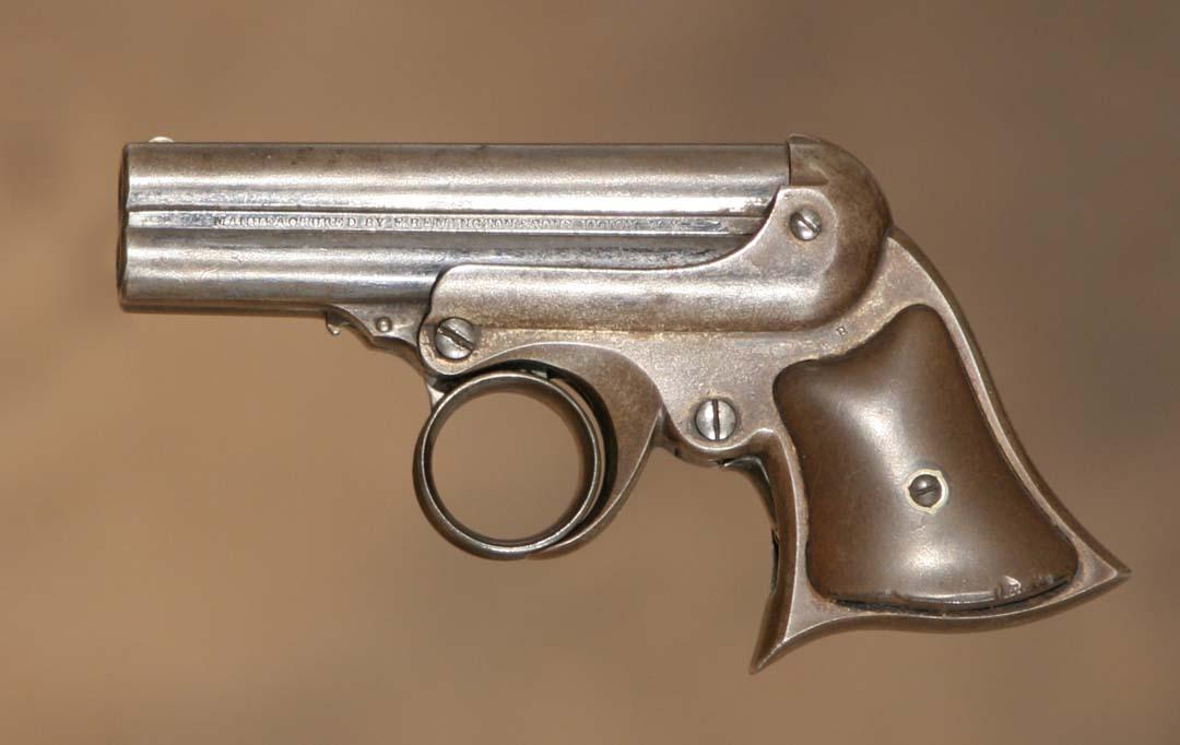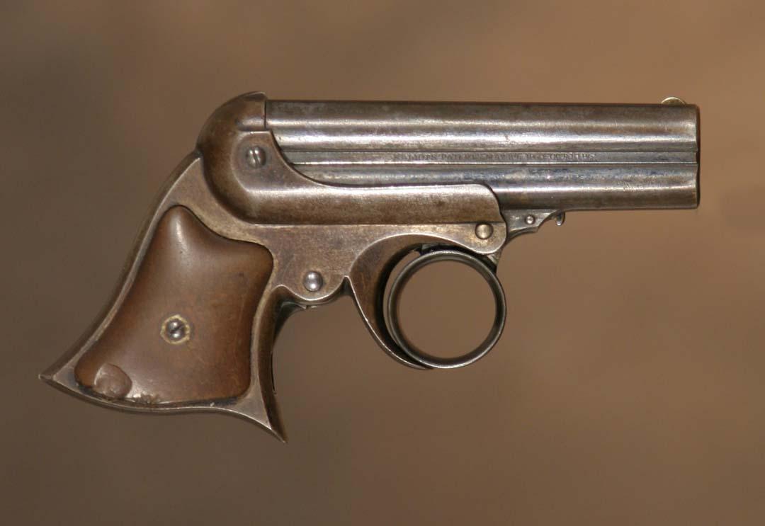 Remington Pepperbox Derringer. 3 ¼" barrel, 4 ¾" overall. 32 rimfire calibre, fine example of a four-shot pocket pistol. Circa 1863-1888. (est $700-900). For condition reports please visit: www.auctioninsantafe.com/cr2011.pdf