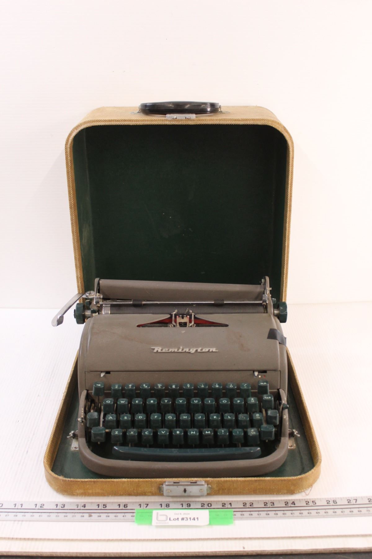Remington Portable Typewriter in Carrying Case - Works, as is, some wear on case