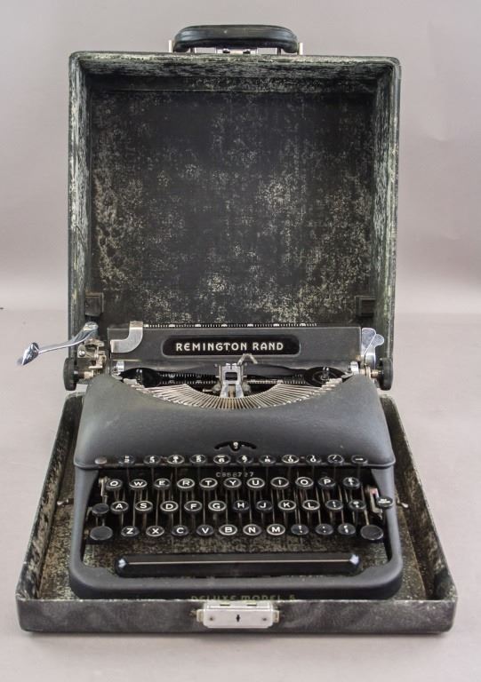 Vintage Remington typewriter. Remington Rand Deluxe Model 5. "CB56727" model number. In working condition, needs new tape. With portable case. 34 x 34 6 cm (13.5 x 13.5 6.75 inches). 7 kg.