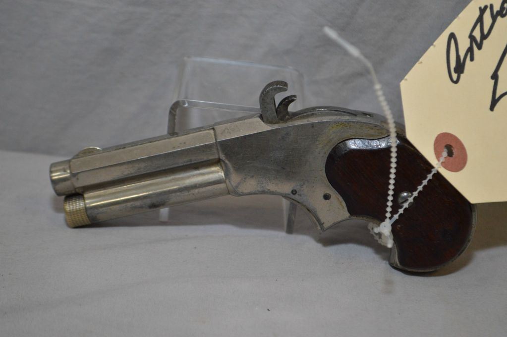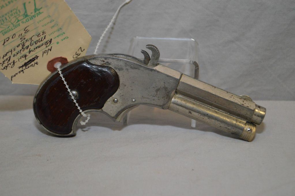 Remington - Rider Model Magazine Pistol .32 Extra Short Rimfire Cal 5 Shot Pistol w/ 3" octagon bbl [ five shot magazine located underneath barrel, breech block / cartridge carrier device adjacent to the hammer, magazine loads from the muzzle end, all parts are nickled, starting to flake in some areas, rosewood or walnut grips, barrel markings E.Remington & Sons, ILION, N.Y./ Riders Pat. August 15, 1871, Invented by Joseph Rider, one of the first metallic cartridge weapons, made Circa 1871 - 1888, approx. quantity less than 15,000 ] Ser # Not Numbered ANTIQUE NO PAL REQ