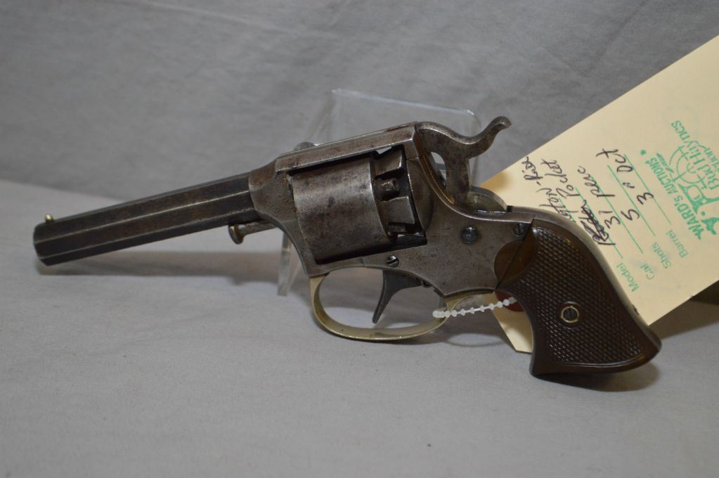 Remington - Rider Model Pocket .31 Perc Cal 5 Shot Revolver w/ 3" octagon bbl [ mushroom shaped cylinder, large oval shaped German silver trigger guard, checkered hard rubber grips, with slight repair to bottom of right grip fading blue finish, barrel markings Manufactured by Remingtons ILION, NY, Rider's Patent August 17, 1858 May 3, 1859 , Total Quantity Approx. 2000, Circa 1860 - 1873 ] Ser # 1869 marked on frame & barrel ANTIQUE NO PAL REQ