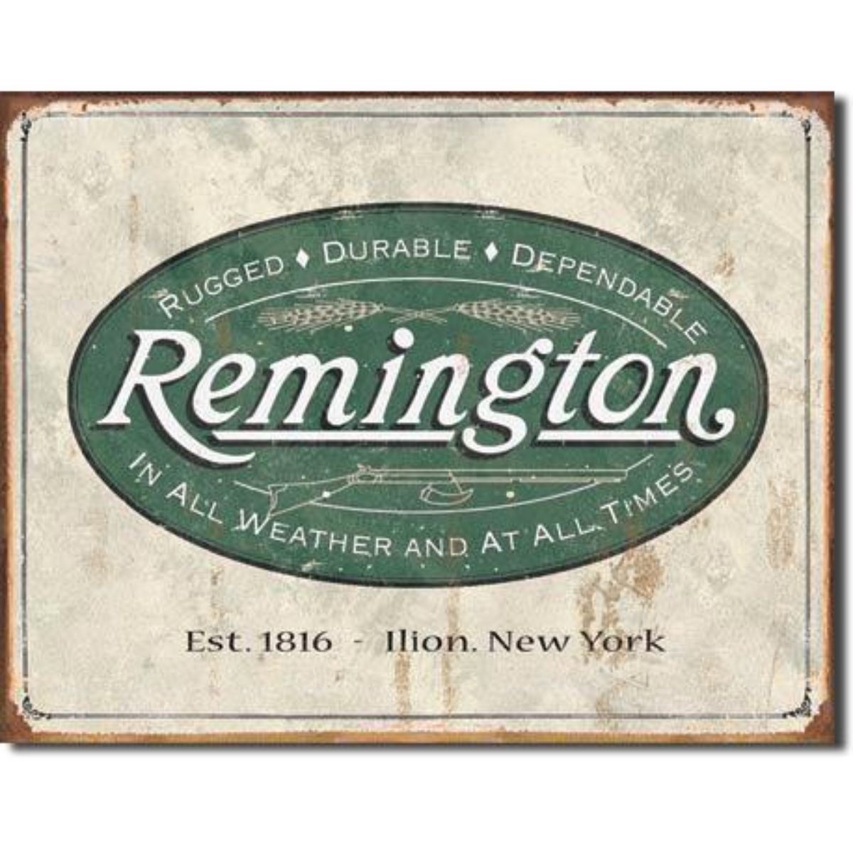Weathered logo Remington weapons, rifles ammunition, pub bar metal advertising sign. 16" W X 12 1/2" H.