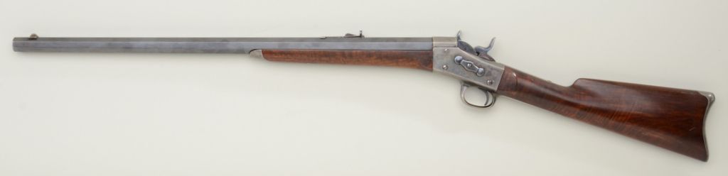 Remington Rolling Block single shot Sporting rifle, .44 cal., 26” octagon barrel marked “E. Remington & Sons. Ilion. N.Y.” on the top barrel flat behind the rear sight, blue and case hardened finish, wood stocks, #5190.This gun is in overall fine to near excellent condition showing approx. 85% original blue to the barrel and approx. 80% original case colors to the receiver; fine bore, crisp action, sharp markings, fine wood stocks with beautiful flame graining to butt stock; an outstanding example of this classic rifle! From the Dr. John Hall Collection. Est.: $2,500-$5,000.