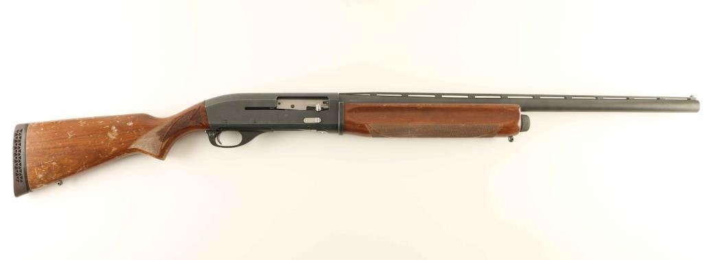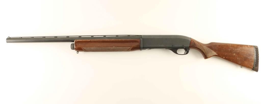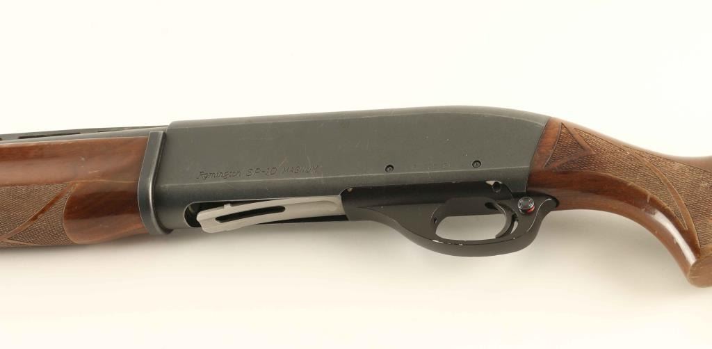 American made gas operated semi-automatic shotgun chambered for 3.5" 10 gauge shells. Features a matte blued finish, 25.5" vent rib barrel with screw in improved modified choke, white bead front sight, silver bead mid sight, 1/2 length tube magazine, smooth trigger, push button safety in the rear of the triggerguard, serrated charging handle, steel receiver, swivel studs, checkered walnut forend and pistol grip shoulder stock with factory recoil pad. Includes a choke tool and two additional chokes marked "Steel - Imp Mod/ Lead - Mod" & "Steel - Xfull/ Lead - Fill". Shotgun retains approximately 90% of it's matte blued finish showing some high point edge wear, scratches and scuffs. Action is crisp, the bore is pristine and the wood stocks are near good with numerous blemishes & small losses. Condition is NRA Good. ***Modern Firearm***