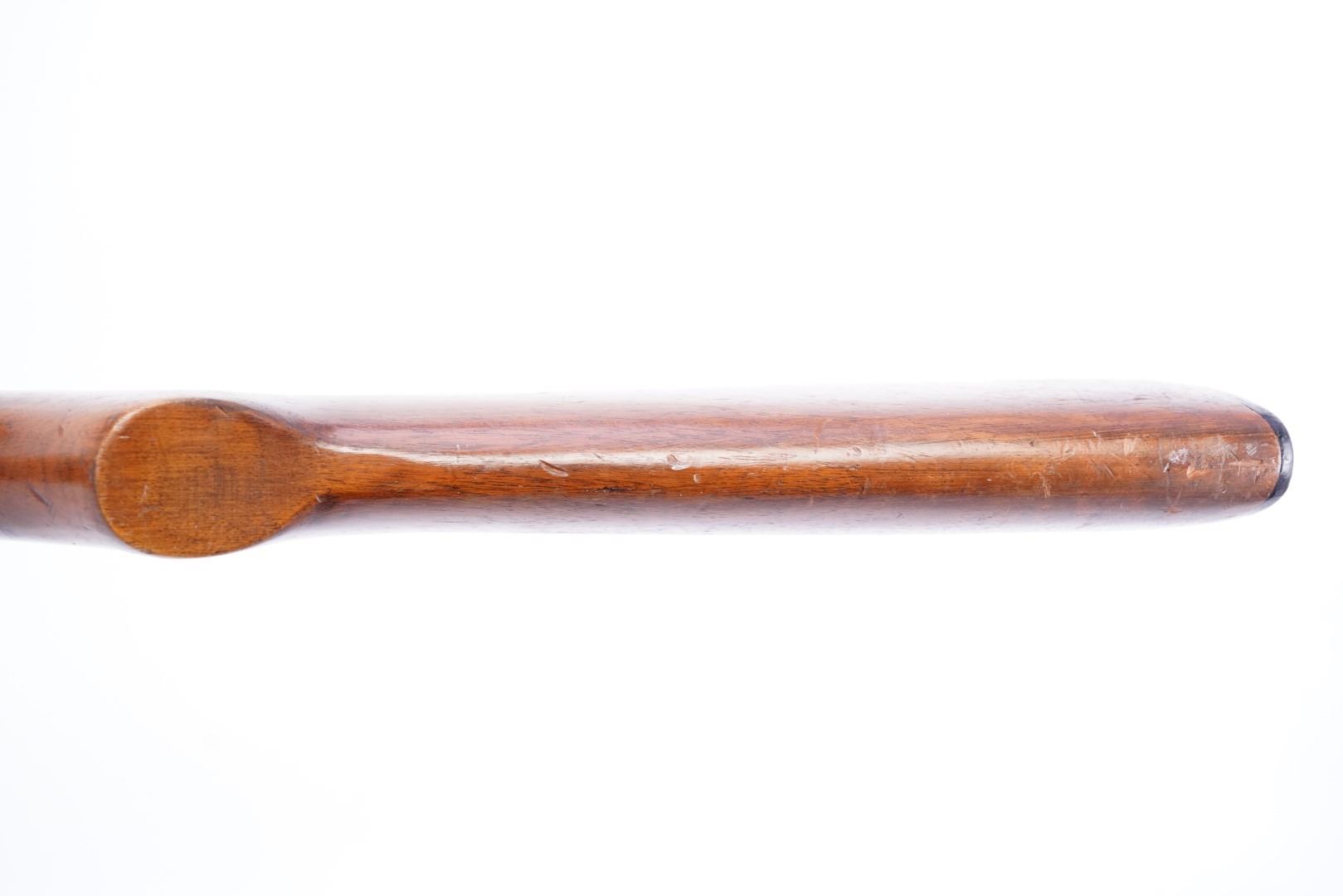 Stock Configuration & Condition: The stock is one piece smooth wood. The stock shows light scratches, scuffs and compressions.The LOP measures 13 3/4" from the front of the trigger to the back of the butt plate. The stocks rate in about Very Good overall condition.