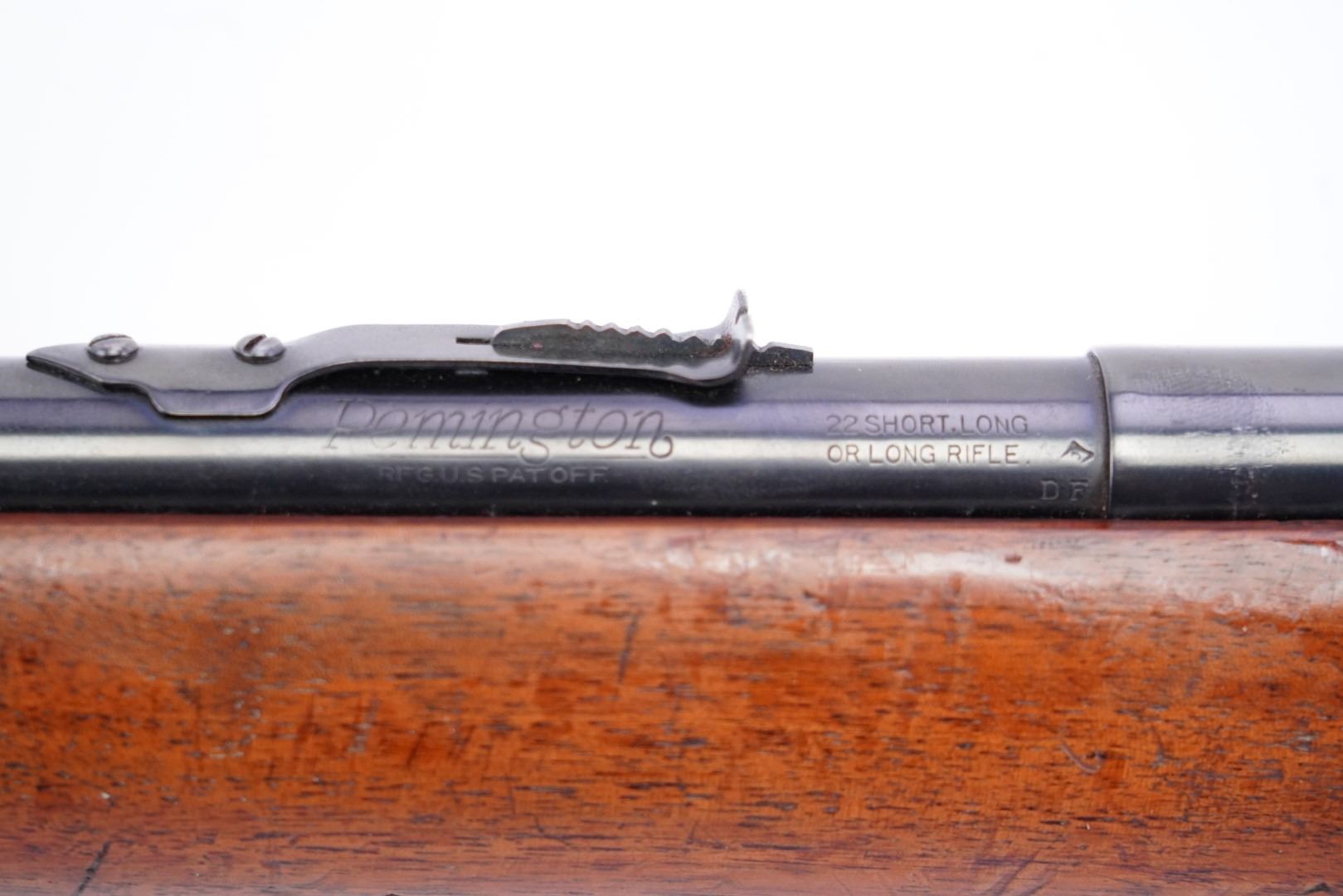Our Assessment: This is a Remington Model 341 "The Sportmaster" bolt action repeating rifle with a 24" barrel chambered for .22 Short, Long or Long Rifle cartridges. Remington produced three versions of the 341 from 1936 to 1940. The rifle features a unique lifter system that allows feeding new cartridges without the bullets coming in contact with the face of the chamber, which should increase accuracy. The rifle is in about Very Good Plus condition with light wear, a great bore and strong mechanics. This will make a great little plinker or pest-control rifle and a great addition to any rifle collection. Please see our photos and good luck!