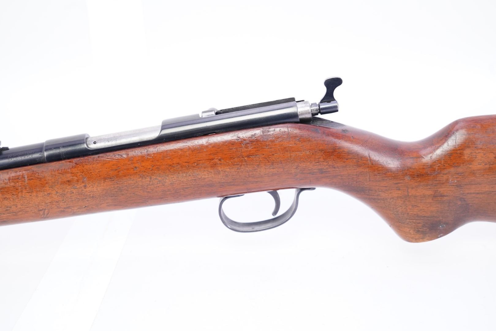 Overall Condition: This rifle retains about 95% of its metal finish showing some nicks, scuffs and minor handling marks. The screw heads are sharp. The markings are clear. Overall, this rifle rates in about Very Good Plus condition.