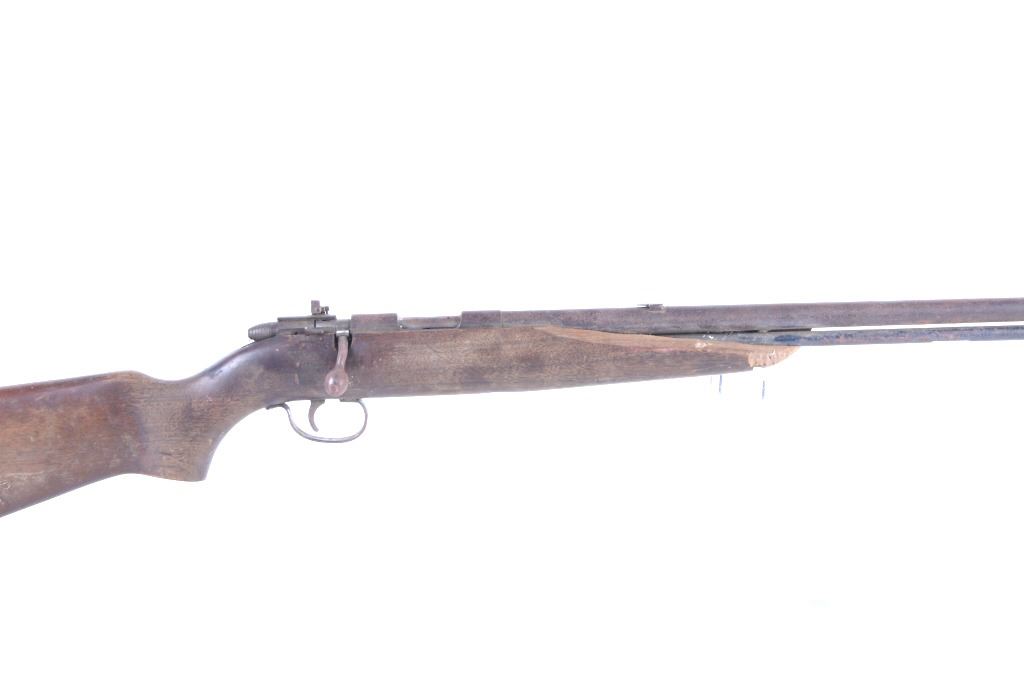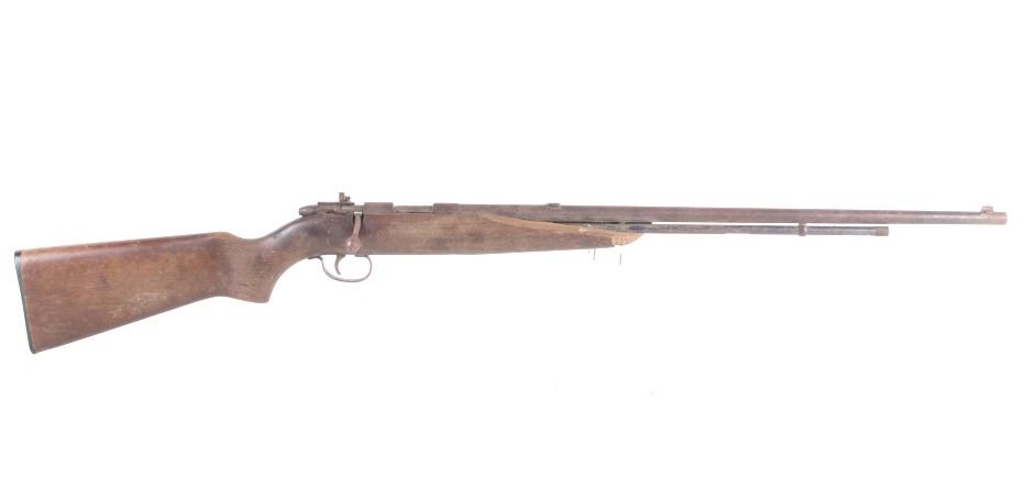 Featured in this lot we have a Remington Sports Master model 512 bolt action rifle chambered in .22 long rifle. The rifle was manufactured between 1940 and 1962 by Remington Arms. The rifle displays a 25" long round barrel, walnut stock, bolt action, under barrel tube magazine, and adjustable rear sight. The top of the barrel is marked "Remington Arms Co. Inc. Ilion N.Y. Made in USA Patents Pending The Sports Master Reg US Pat Off Model 512" with "Remington Reg US Pat Off .22 Short Long or Long Rifle" towards the receiver. The piece shows functioning mechanics with operational trigger and action. The rifle shows fair to poor condition with rust and pitting across the exterior and damage to the wood stock. Serial Number: NSN. This firearm qualifies as a Curio & Relic firearm, and requires FFL Transfer or NICS Background Check.