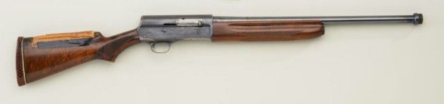 Remington Sportsman 12 gauge semi-auto shotgun with barrel reduced to 21" and mount for screw on Cutts style choke. The gun has been used hard put away wet approx 75% blue, stock badly damaged, action good, boredeteriorated and butt plate needs replacement. Robert E. Petersen who had one of the finest gun collections in the world kept this shotgun for either sentimental purpose as it belonged to his long timefriend Robert Stack. Robert Stack had a long career as an actor and narrator most remembered for his role as Elliot Ness in "The Untouchables" television series and later as the host and narrator of "UnsolvedMysteries". This cataloguer who knew both these premier collectors well can speculate it was some sort of a joke or wager that Petersen kept this gun for sentimental reasons. Robert E. Petersen collection.Est.;$500.-$1,000.