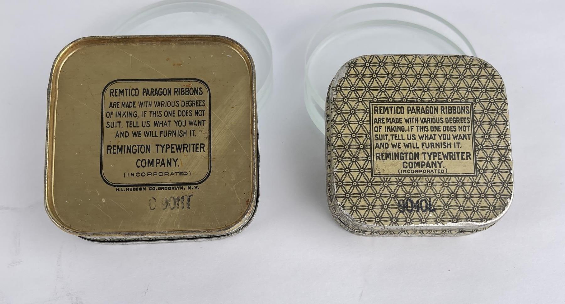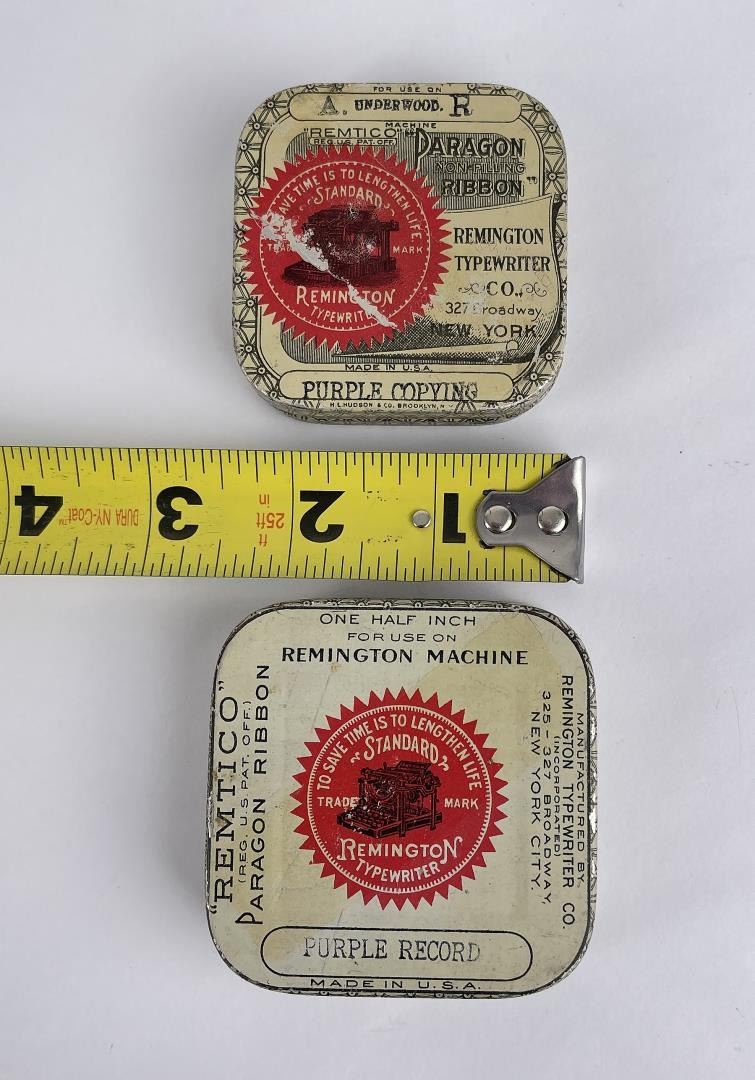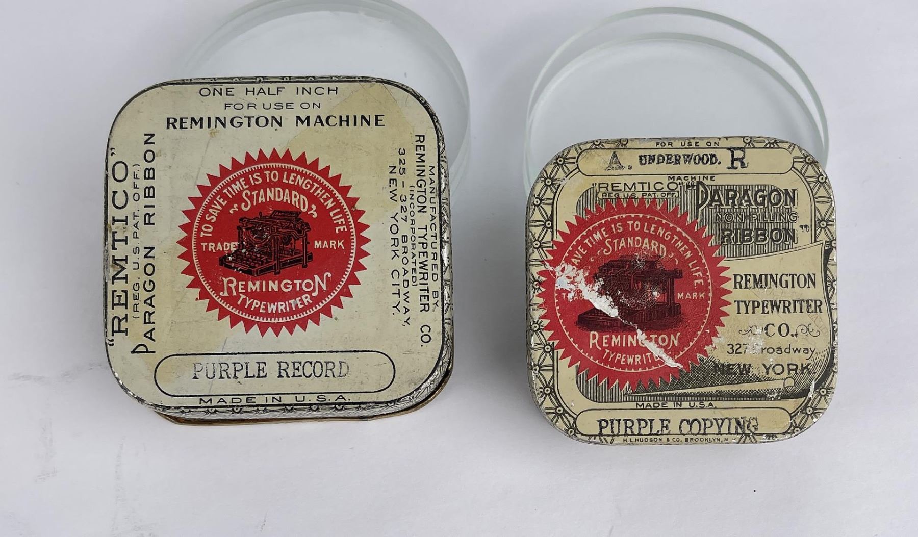 Lot of two empty ribbon boxes. Would have been used with Underwood typewriters. Purple copy ribbon. Remtico Paragon Ribbons.