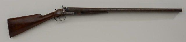 Remington Whitmore 12 GA Hammer lifter shotgun #2023. Standard grade, straight stock, no PT date on release. 30” BBL’s unaltered, good to very good. Fair to good bores. Locks tight. 1870’s mfg, good Rem.Address. Est.:$ 400-$800.