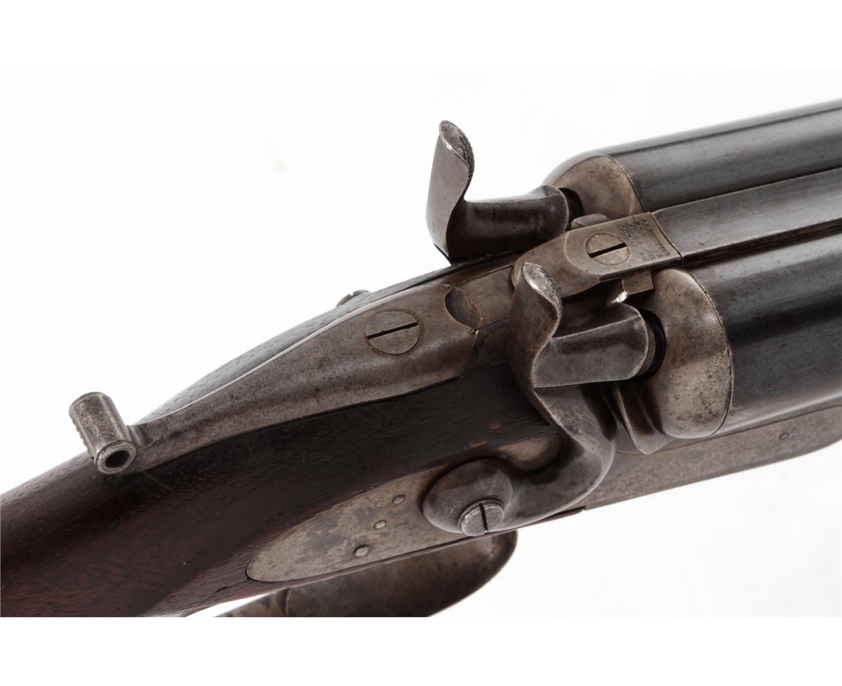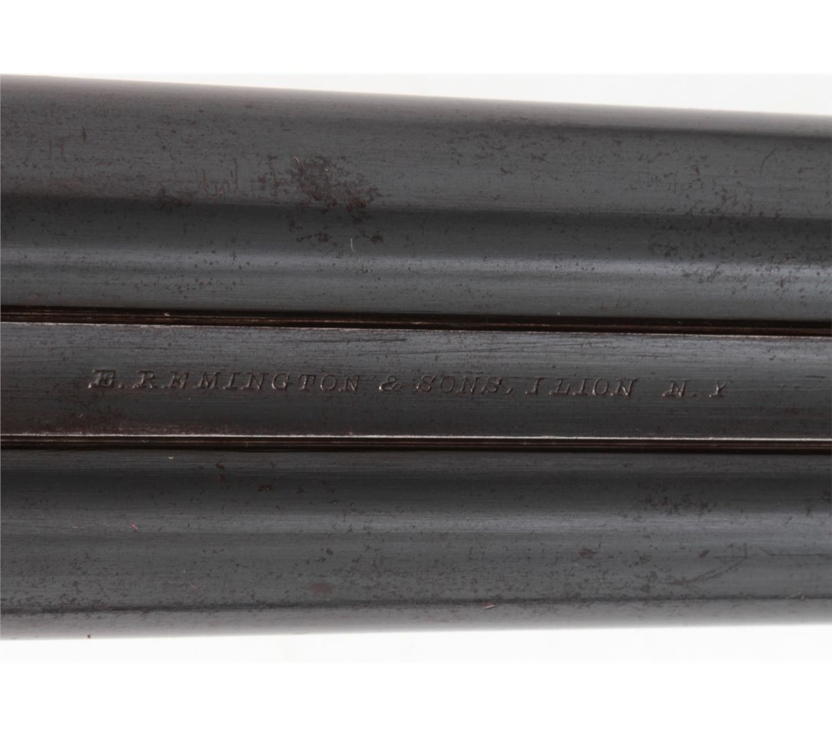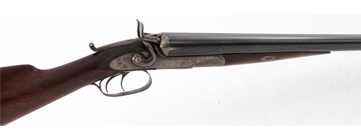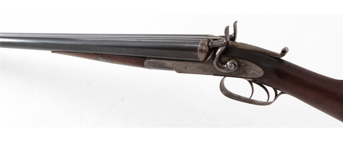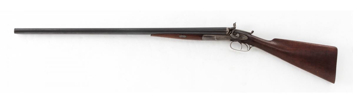 Remington Whitmore Model 1874 Side-by-Side Shotgun, NVSN, 12 ga., 30'' game rib barrels choked Mod./Imp., 2-5/8'' chambers, blue finish, case hardened frame and hammers, walnut stock and forend. Condition is very good retaining approx. 85%-90% blue with light case colors remaining to frame and sideplate. Stock with light to moderate scuffs and scratches; loss to forward right edge of forend. Good action, very good bores. Est.: $450-$650. (Antique)