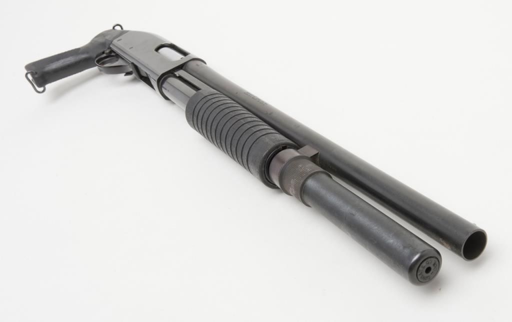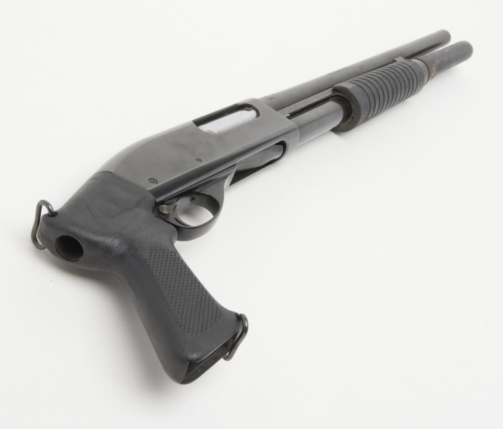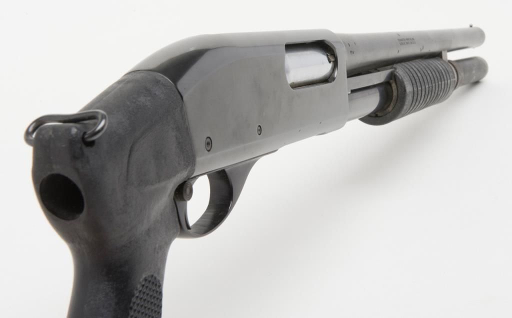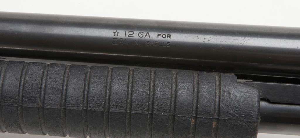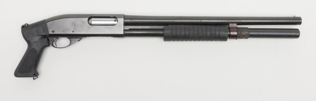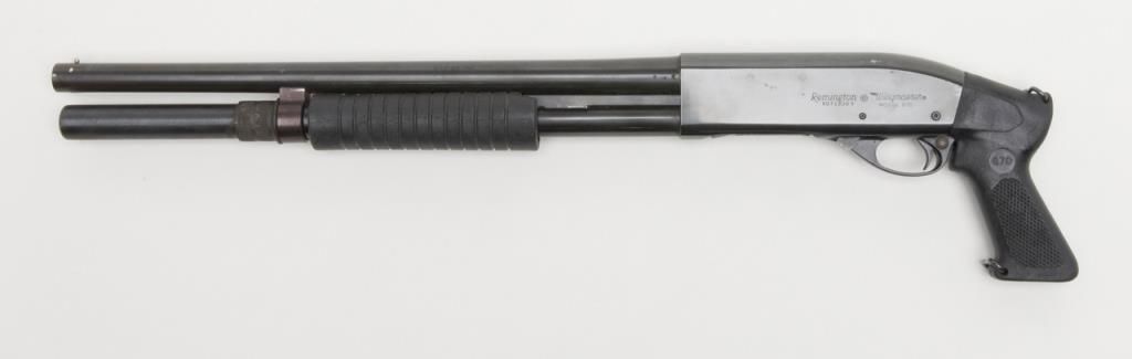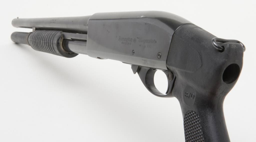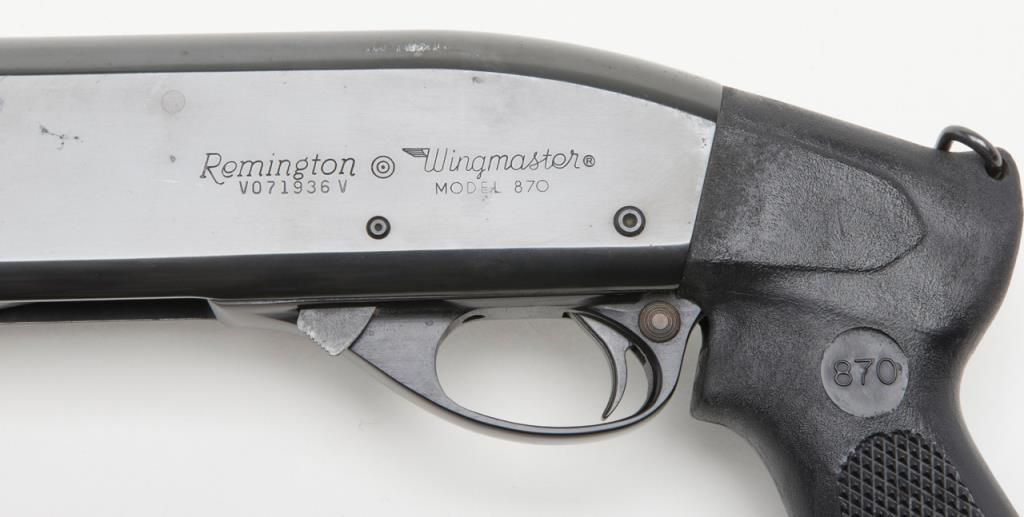 Remington Wingmaster Model 870 pump action shotgun, 12 gauge, 18” barrel, neoprene grip and forend, blue finish, #V071936V in overall very good condition showing majority of its original finish, very good bore, action, markings andgrips. (Modern). Est.: $150-$300.