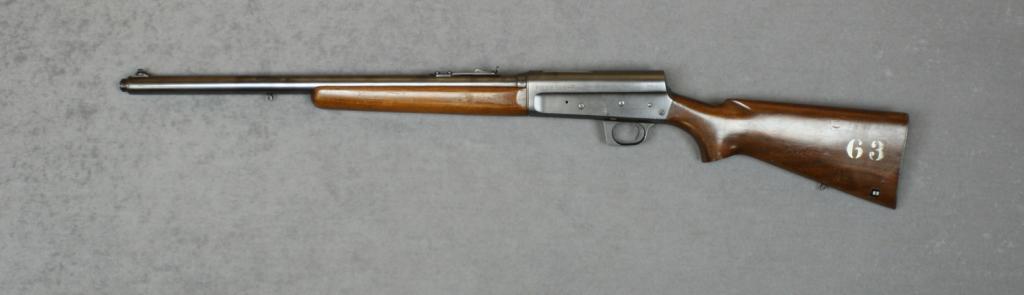 Remington Woodsmaster Model 81 semi-auto rifle marked “Police Gun – Property of Los Angeles County Police Sheriff Dept.” on left side of receiver, .35 Rem. cal., 22” barrel, blue finish, wood stocks, #18825. This gunis in overall fine condition showing approx. 97% original finish, excellent bore, crisp action, sharp markings, very good wood stocks with “63” stenciled on the left side of the butt stock and “FPK” marked on the bottom of the semi-pistol grip; sling swivel eyelets present, checkered steel butt plate, no magazine. The Model 81 was a popular Police gun in the days of pre-SWAT units. Est.: $600-$1,200.