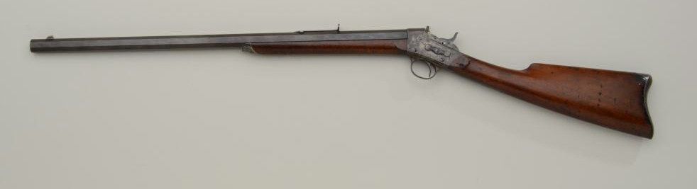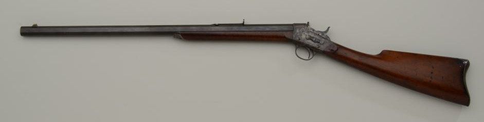 Remington mid-size single shot rolling block rifle, .38-40 cal., 24-1/8” octagon barrel, blue and case hardened finish, wood stocks, $10726. This gun is in overall very good condition showing a plum brown patina on thebarrel and silvery toning of case colors on the receiver, very good bore, crisp action and very good markings; the wood stocks are overall very good with some scattered old mars from carry and storage. Est.:$800-$1,600.