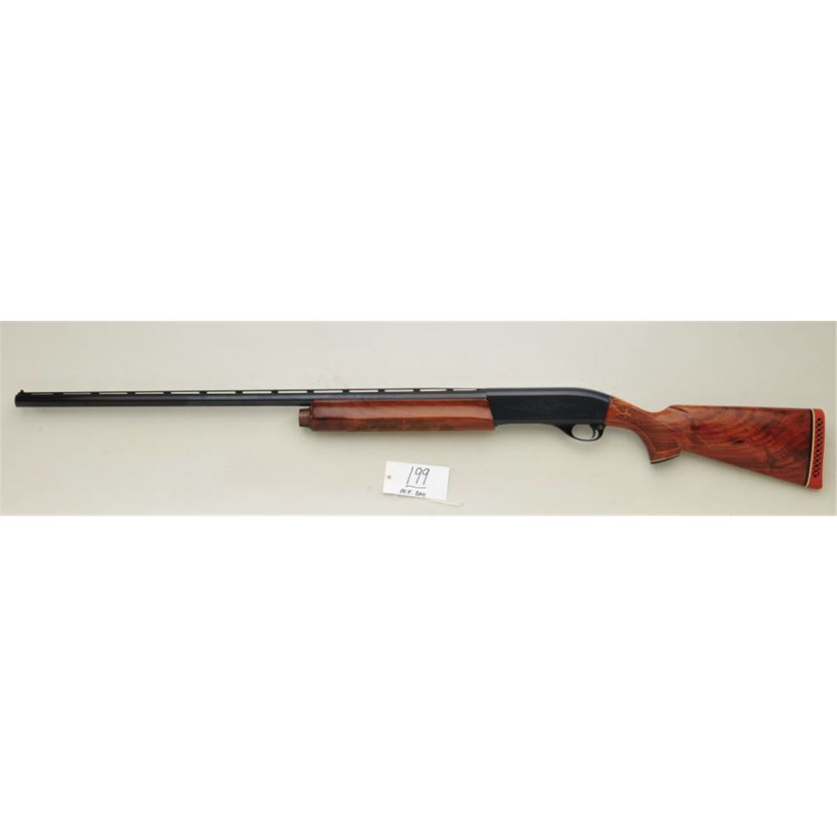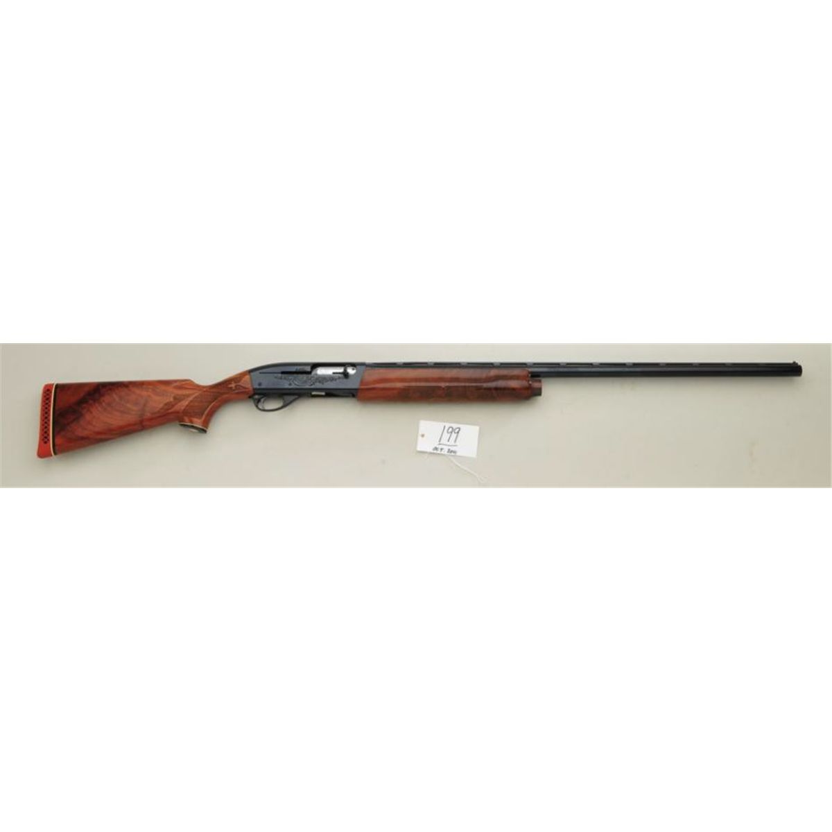 Remington model 1100, 12ga semi-automatic factory trap marked shotgun with 30” full choke barrel, select wood stock, serial #M204682V. Factory recoil pad. Very good plus to near fine condition, 95-98% originalblue. Normal firing and use, but well cared for. Est: $400 - $800