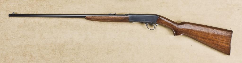 Remington model 24, .22 LR caliber, semi-automatic, Browning patent marked “Successor to U.M.C”, serial “114316”. The rifle remains in very good plus to near fine condition with 90-95% original blue just starting to thin and tone, stocks are very good plus with some minor marks, storage scratches, minor use, and normal aging. The trigger shows most original color, interior is fine to near excellent. Est.: $350-$700
