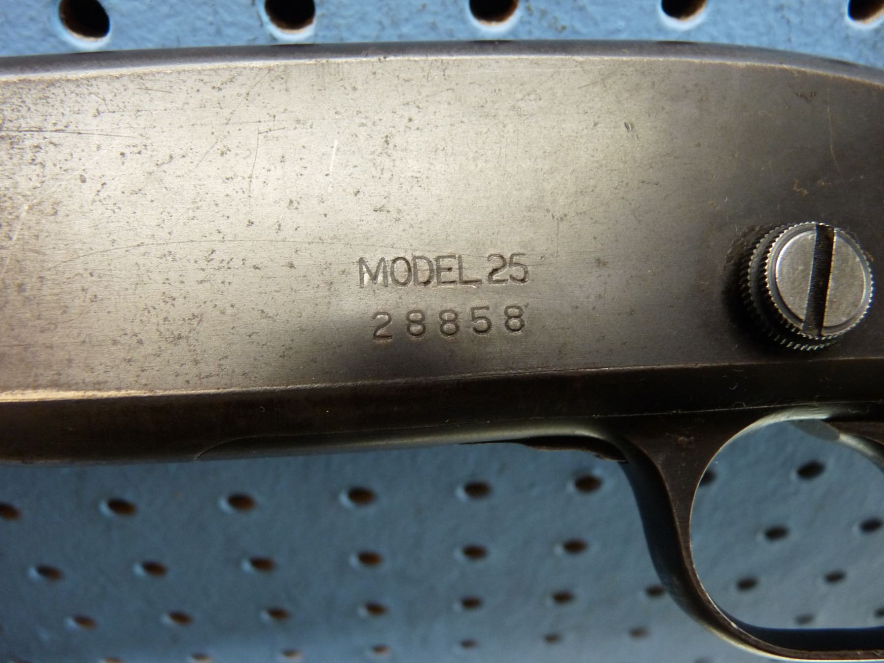 Remington, model 25, caliber 25-20 , pump action , tube magazine, Backsight does not look to be original , stock looks to be refinished as does buttplate, serial number 28858