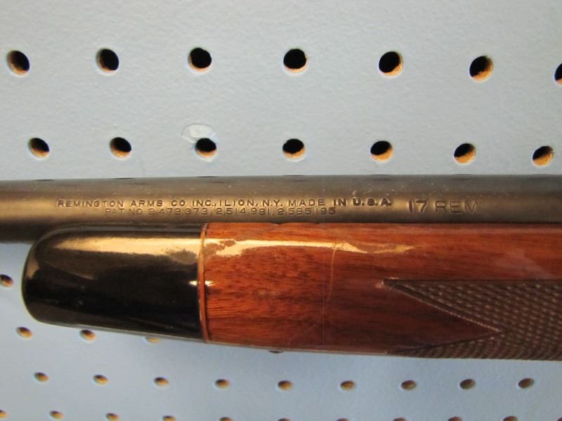 Remington model 700, bolt action, 17 REM calibre, hinged floor plate, Redfield 3 - 9 scope
