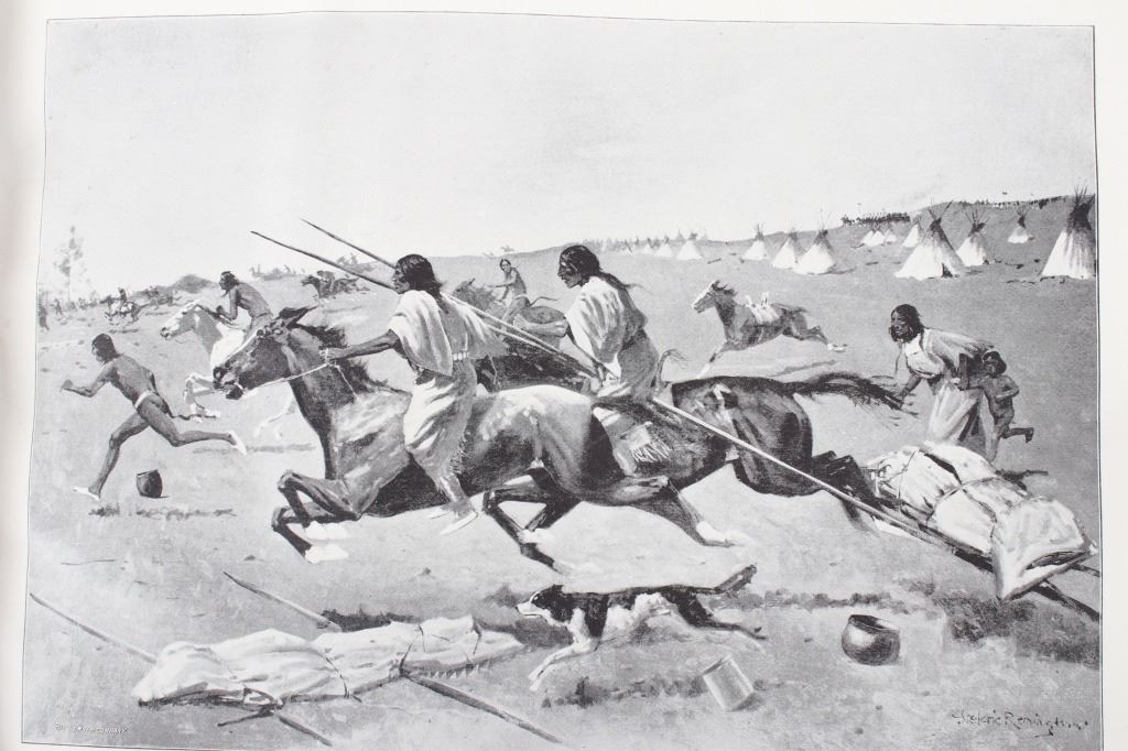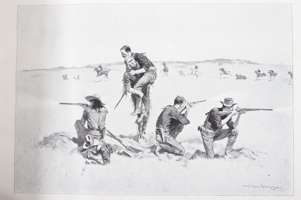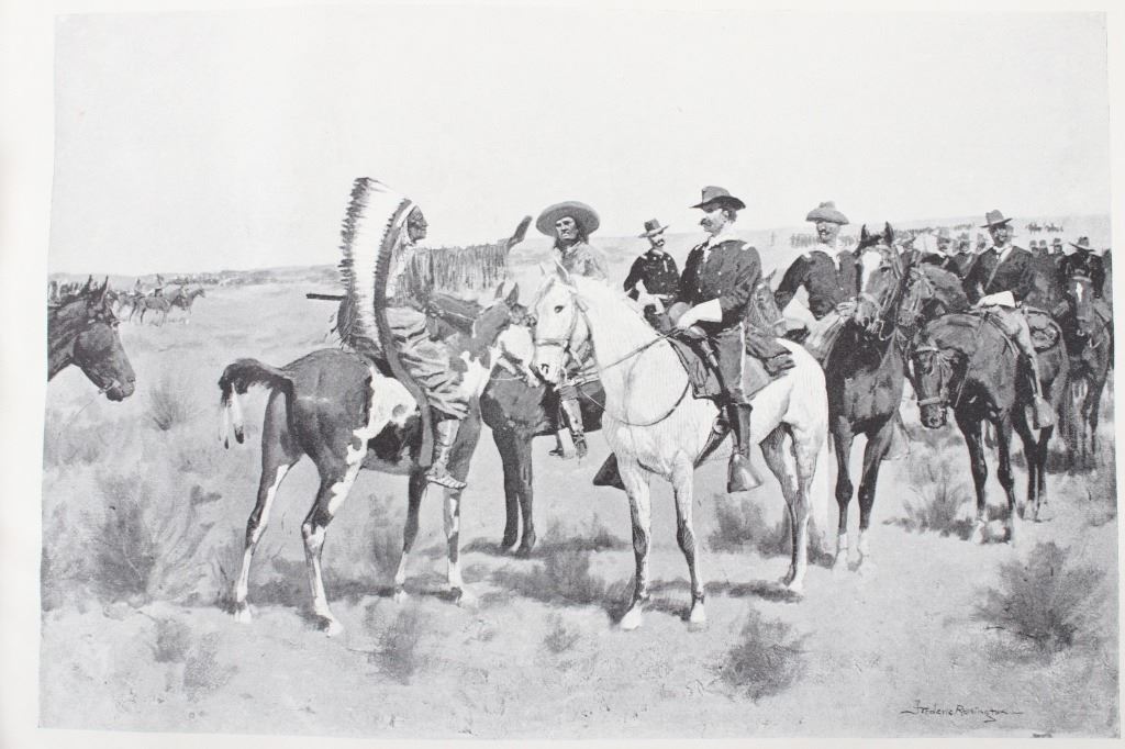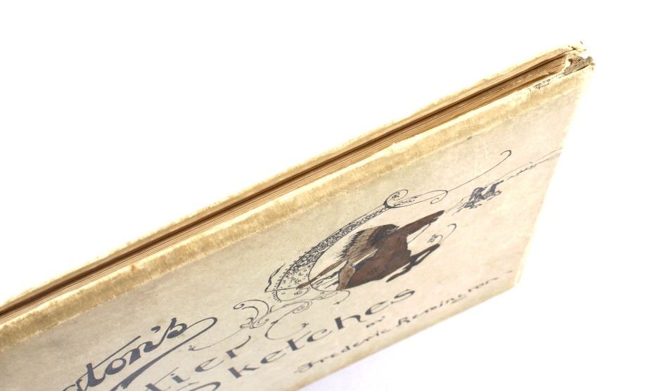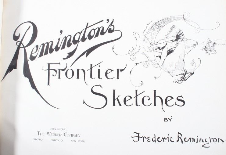 This is a RARE edition of "Remington's Frontier Sketches" by Frederic Remington and published in 1898 by the Werner Company. Remington is arguably one of the most influential Western artists who ever lived. This book was published at about the pinnacle of his career and highlights some of his best works thus far. The book is in very good condition for its age with some wear on the cover. The book measures 12" long by 9 1/2" tall.