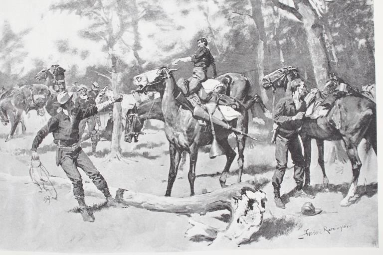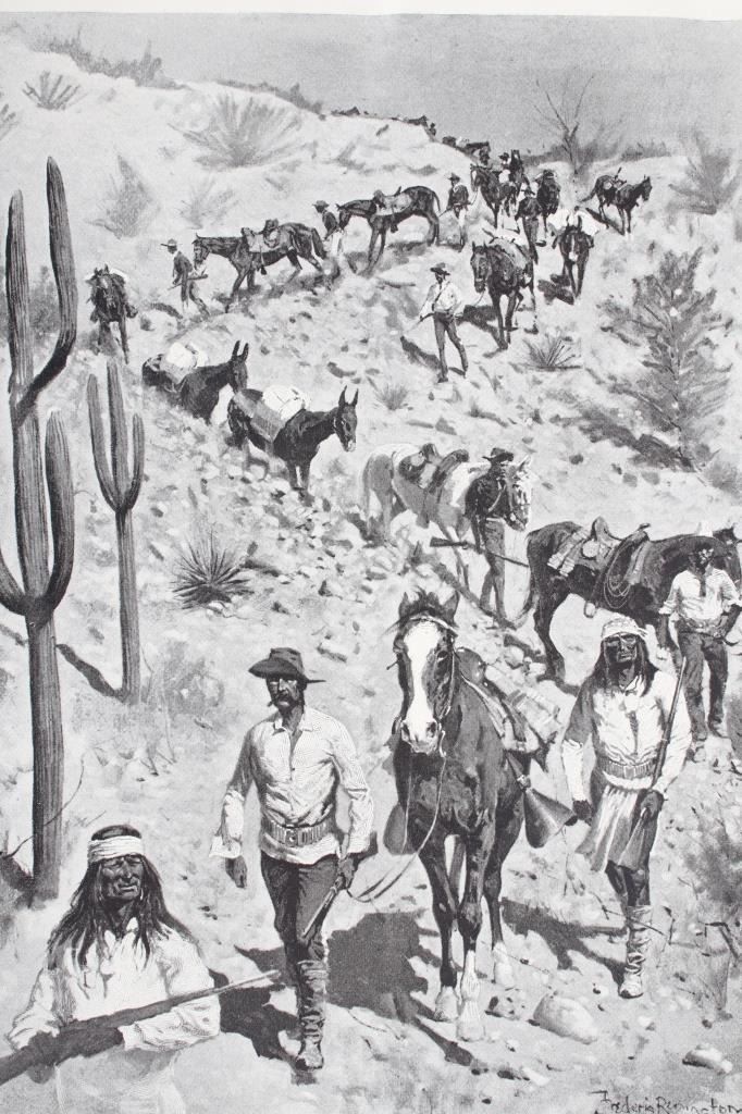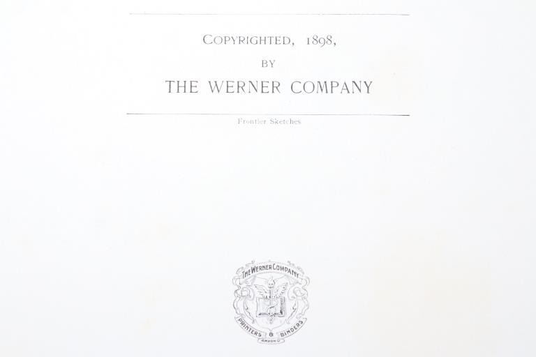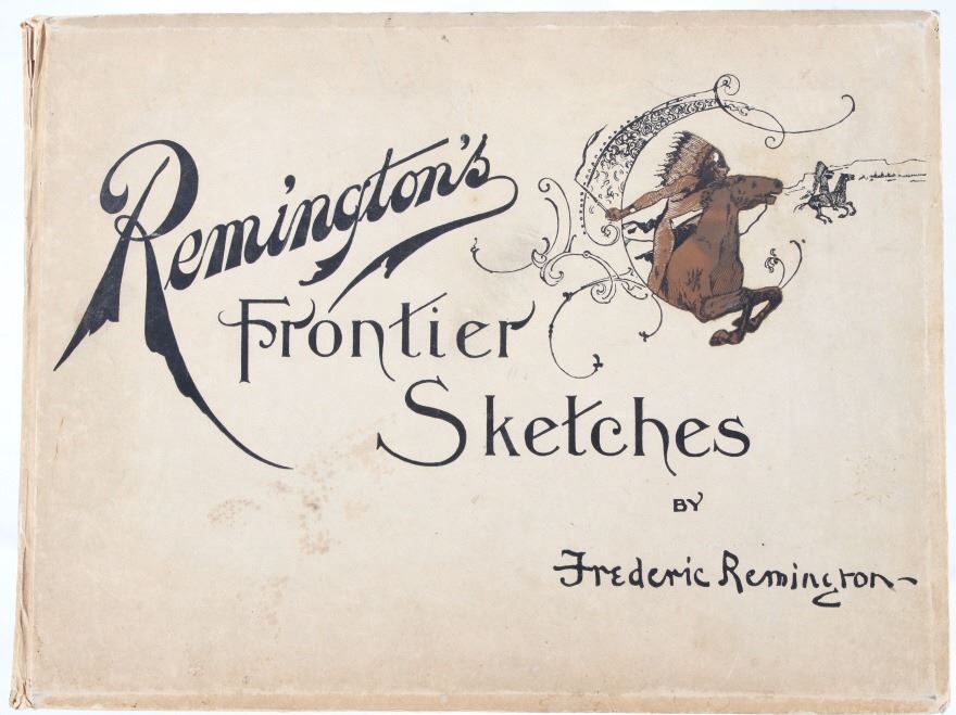 This is a RARE edition of "Remington's Frontier Sketches" by Frederic Remington and published in 1898 by the Werner Company. Remington is arguably one of the most influential Western artists who ever lived. This book was published at about the pinnacle of his career and highlights some of his best works thus far. The book is in very good condition for its age with some wear on the cover. The book measures 12 1/2" long by 9 1/2" tall.