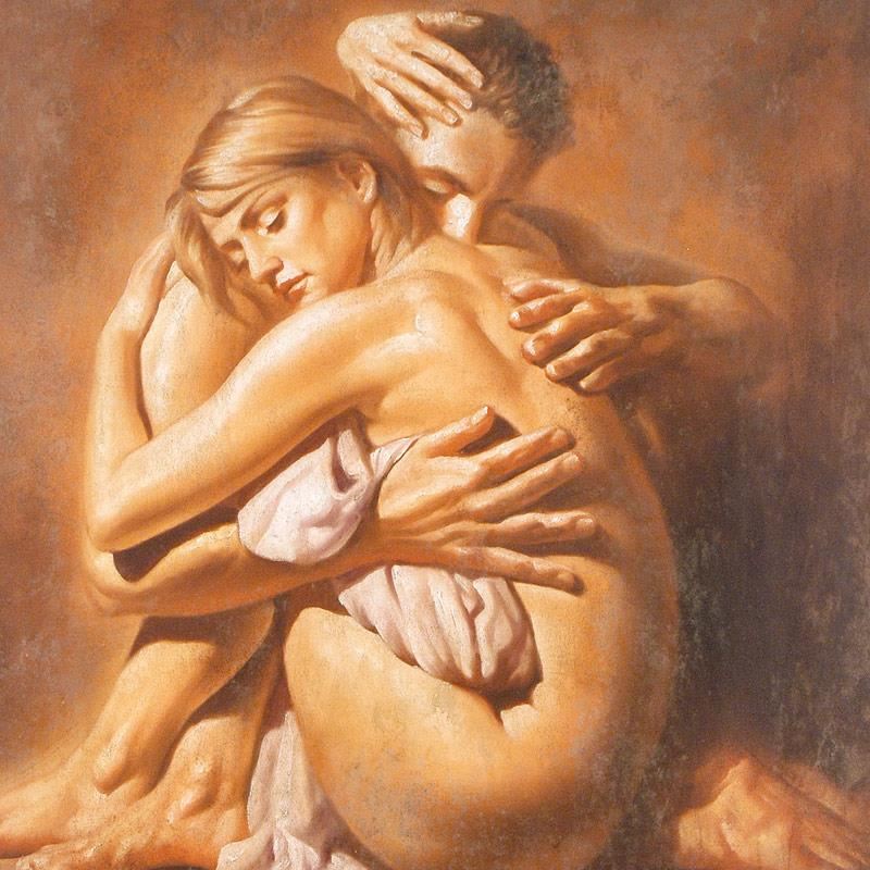 With a style that is reminiscent of the frescoes of Michelangelo and Caravaggio, Tomasz Rut creates breathtaking works of art that capture the beauty of the human form. "Remisse" is a limited edition giclee on canvas, numbered and hand signed by Rut. Includes Certificate of Authenticity! Measure approx. 28" x 28" (image).