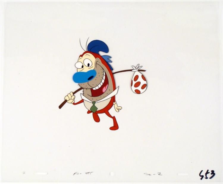 This is an original production animation cel from the Nickelodeon TV show Ren & Stimpy. The show follows two characters - Ren, a crazy Chihuahua - and - Stimpy, an incredibly stupid cat - as they think up to all kinds of hair brained schemes and get themselves into some sticky situations. The Ren and Stimpy Show debuted in August 1991 with a two-part episode, 'Stimpy's Big Day / The Big Shot' and became an instant hit. It was the third Nicktoon ever to be aired on the Network alongside Doug and Rugrats. Here, Stimpy is ready for life on the rails * * Original Production Art Cel Overall Size of the Cel: 10 1/2" x 1/2" Very Good condition This is an original hand-painted cel set-up used in the production of an episode of "The Ren & Stimpy Show." Each one-of-a-kind set-up represents a slight change in position of the characters. When individually photographed and projected in rapid succession, the images appear to move. * To create production cels, the original animator's drawing is transferred onto an acetate cel (by hand-inking and/or photo copying). The cel is then hand-painted on the reverse side. * The cel is ready to be matted and framed. The animator's notations are shown at the bottom of the cel. This cel desreves two thunbs up, buy it now! *