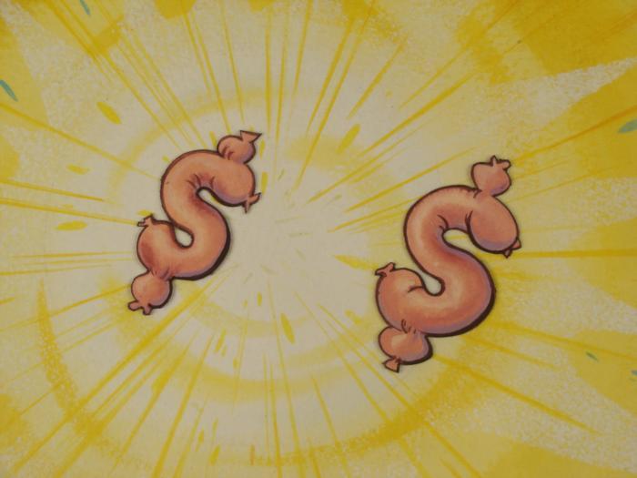 This is an original production animation cel from the Nickelodeon TV show Ren & Stimpy. The show follows two characters - Ren, a crazy Chihuahua - and - Stimpy, an incredibly stupid cat - as they think up to all kinds of hair brained schemes and get themselves into some sticky situations. The Ren and Stimpy Show debuted in August 1991 with a two-part episode, 'Stimpy's Big Day / The Big Shot' and became an instant hit. It was the third Nicktoon ever to be aired on the Network alongside Doug and Rugrats. Weiners will make you money--it s a vision!Original Production Art Cel Cel Overall Size of the Cel: 10 3/4" x 13" Overall Size of the Background: 11" x 14 1/4" Excellent condition This is an original hand-painted cel set-up used in the production of an episode of "The Ren & Stimpy Show." Each one-of-a-kind set-up represents a slight change in position of the characters. When individually photographed and projected in rapid succession, the images appear to move.