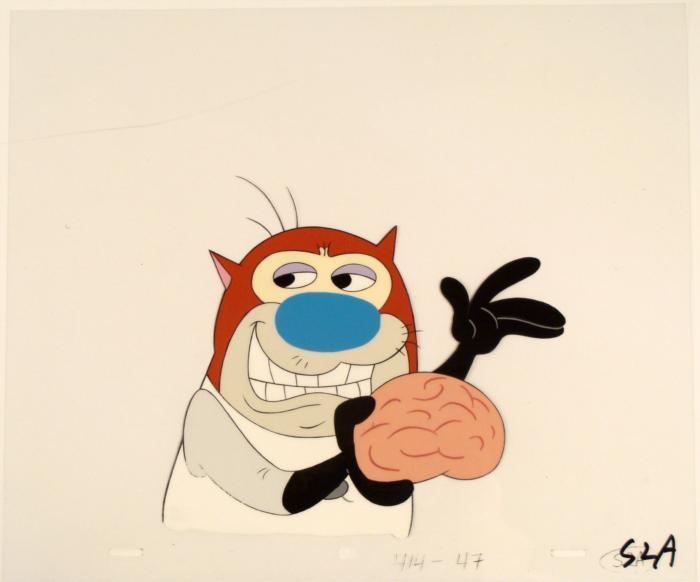 This is an original production animation cel from the Nickelodeon TV show Ren & Stimpy. The show follows two characters - Ren, a crazy Chihuahua - and - Stimpy, an incredibly stupid cat - as they think up to all kinds of hair brained schemes and get themselves into some sticky situations. The Ren and Stimpy Show debuted in August 1991 with a two-part episode, 'Stimpy's Big Day / The Big Shot' and became an instant hit. It was the third Nicktoon ever to be aired on the Network alongside Doug and Rugrats. Neurosurgeon Stimpy at your service...Original Production Art Cel Overall Size of the Cel: 10 1/2" x 12 1/2" Excellent condition This is an original hand-painted cel set-up used in the production of an episode of "The Ren & Stimpy Show." Each one-of-a-kind set-up represents a slight change in position of the characters. When individually photographed and projected in rapid succession, the images appear to move.