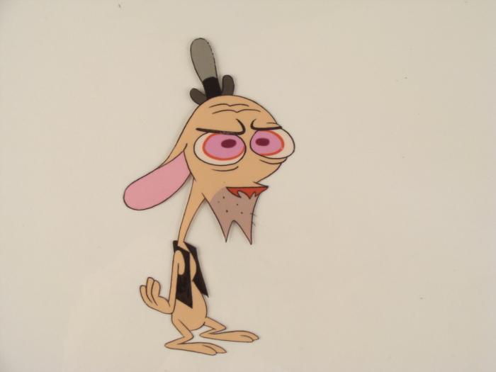 This is an original production animation cel from the Nickelodeon TV show Ren & Stimpy. The show follows two characters - Ren, a crazy Chihuahua - and - Stimpy, an incredibly stupid cat - as they think up to all kinds of hair brained schemes and get themselves into some sticky situations. The Ren and Stimpy Show debuted in August 1991 with a two-part episode, 'Stimpy's Big Day / The Big Shot' and became an instant hit. It was the third Nicktoon ever to be aired on the Network alongside Doug and Rugrats. Question is, when is Ren not grumpy?Original Production Art Cel Overall Size of the Cel: 10 1/2" x 12 1/2" Excellent condition This is an original hand-painted cel set-up used in the production of an episode of "The Ren & Stimpy Show." Each one-of-a-kind set-up represents a slight change in position of the characters. When individually photographed and projected in rapid succession, the images appear to move.