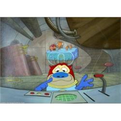 Ren and Stimpy - Original Animation Cell from Space Madness (Nickelodeon 1992). Who doesn't love Ren and Stimpy? John Kricfalusi's wild dog 'n' cat characters set the animation world on their collective ear with this innovative series back in the early 1990s. And no cartoon from that wonderful program has more appeal than "Space Madness!" Here's a rare chance to own a production cell with the original hand-painted background from this remarkable short. This scene has Stimpy hard at work, while Ren covets his "beloved ice-cream bar" (actually, it's a bar of soap, but then, Ren has space madness!) Size of the cell is 9" x 12", in a frame measuring 18" x 21". Please note that the scratch visible in the image is on the plexiglass outer frame, and not the actual cel itself, which is in pristine condition. Important notice: Heritage usually auctions material at the rate of 200-250 lots per hour. On some occasions eBay Live bid software or the Internet may not be able to keep up with the pace of the auction. We recommend placing a realistic absentee bid now as insurance to avoid disappointment. Occasionally the auctioneer may eliminate or reject an eBay Live bid, and the auctioneer may also reopen a lot after the close of the eBay live bidding (usually because we missed an audience bid), and may reject your bid even if it shows you as the winning bidder. By bidding via eBay Live, you agree that Heritage may award the lot to another bidder at its sole discretion under the circumstances described above or any other reasonable circumstances. Also please note that all Heritage lots purchased through eBay Live carry a 20% Buyer's Premium. Please make sure you read the Terms and Conditions before you bid.