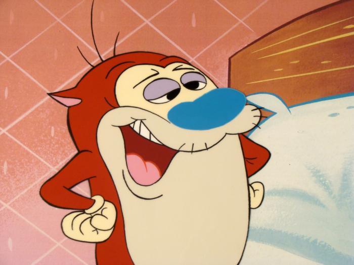 This is an original production animation cel from the Nickelodeon TV show Ren & Stimpy. The show follows two characters - Ren, a crazy Chihuahua - and - Stimpy, an incredibly stupid cat - as they think up to all kinds of hair brained schemes and get themselves into some sticky situations. The Ren and Stimpy Show debuted in August 1991 with a two-part episode, 'Stimpy's Big Day / The Big Shot' and became an instant hit. It was the third Nicktoon ever to be aired on the Network alongside Doug and Rugrats. Here, Stimpy appears to have that look of satisfaction on his face.Original Production Art Cel Cel Overall Size of the Cel: 10 1/2" x 12 1/2" Overall Size of the Background: 11" x 14 1/4" Excellent condition This is an original hand-painted cel set-up used in the production of an episode of "The Ren & Stimpy Show." Each one-of-a-kind set-up represents a slight change in position of the characters. When individually photographed and projected in rapid succession, the images appear to move.