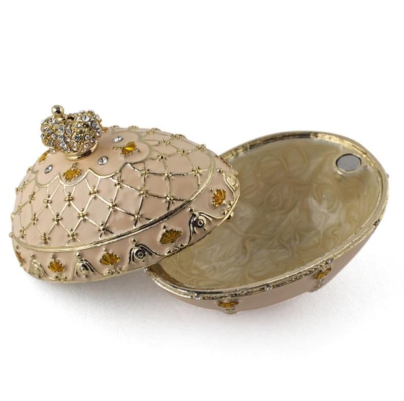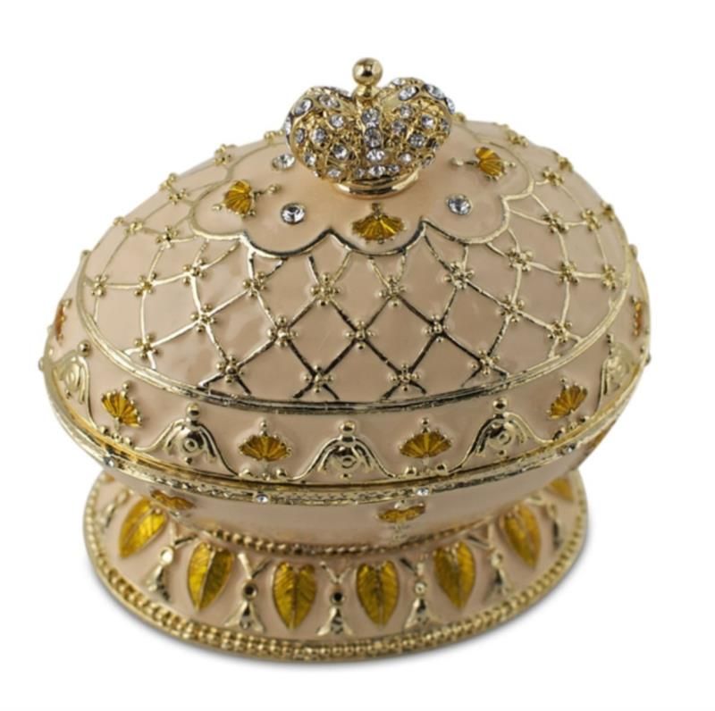 History: Carved from a block of milky agate, mounted on a gold enameled base, egg was closely modeled after an seventeenth-century box by Le Roy, Germany. A highly intriguing hypothesis has recently been advanced by Christopher Forbes, namely that the Resurrection Egg is in fact the surprise originally contained in the Renaissance Egg. This would account for its being shown in the same showcase at the 1902 exhibition, where surprises have been separated from their eggs. Moreover, style and coloring of both objects are virtually identical and the size of the Resurrection Egg perfectly fits the curvature of the egg. 1930 one of the ten Imperial Eggs sold by the Antikvariat in Moscow to the Hammer Galleries, New York. 1965 Sold by A La Vieille Russie, to Malcolm Forbes, the Forbes Magazine Collection, New York. February 2004 bought by the Vekselberg Foundation, Moscow, Russia together with 8 other Imperial Eggs. 2.5'' (H) X 2.75'' (L) X 1.75" (W) Pewter, Enamel, Crystals Faberge is a trademark of Pallinghurst Resources LLP. This piece of art should not be associated with Pallinghurst Resources LLP, Faberge Limited Co. who acquired the Faberge trademark in 2007. This item is an exacting replication of a piece of priceless value.