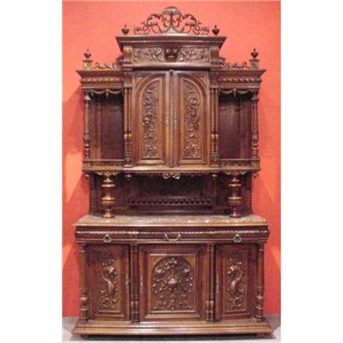 Magnificently Carved Solid Walnut Breakfront in the Renaisance Revival Style.