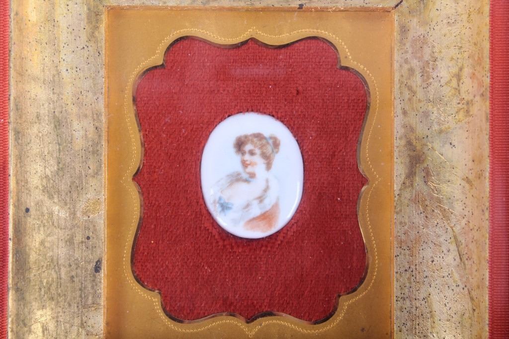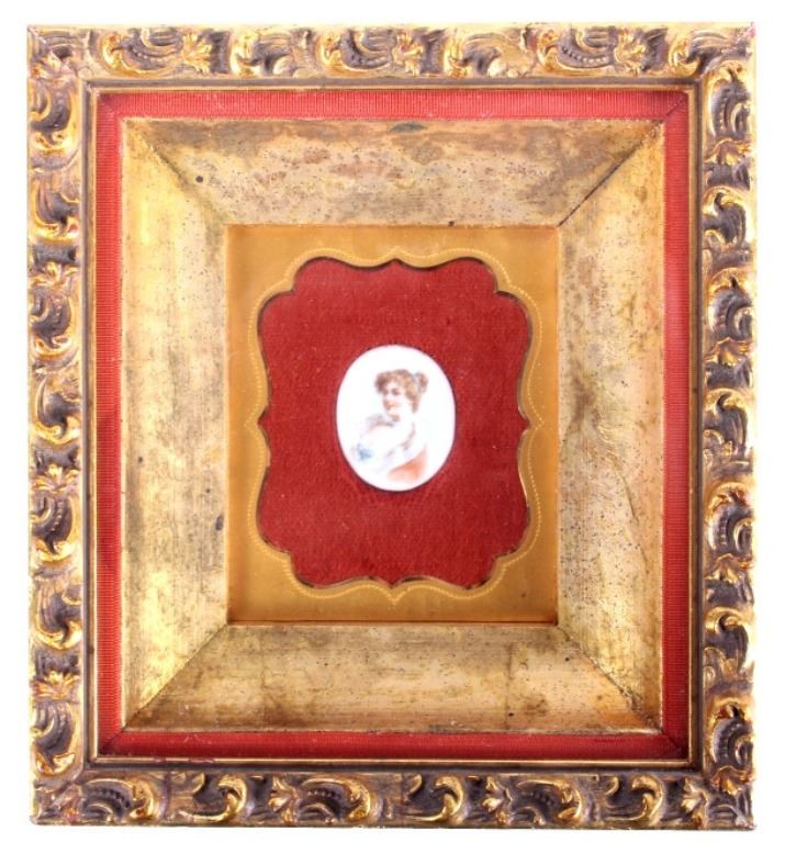 You are bidding on a collection of four beautifully framed Renaissance style art miniatures, including a hand-painted cameo on porcelain, and a Madonna and Child. The largest measures 6 1/4"x 6 5/8". All are in excellent condition and ready to hang.