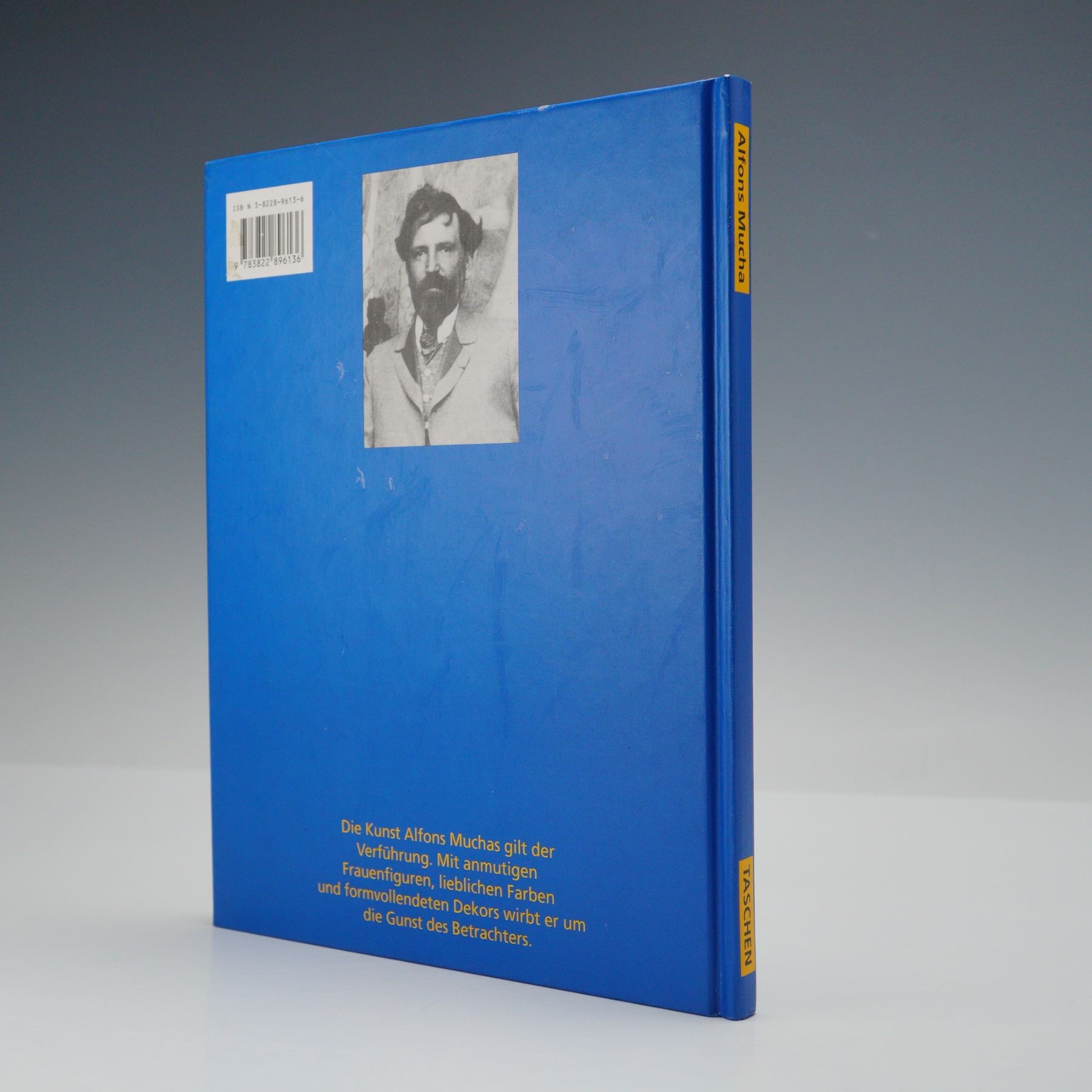 This beautifully produced hardcover volume from Taschen celebrates the life and work of Alfons Mucha (1860-1939), one of the most influential artists of the Art Nouveau movement. Presented in a striking blue cover featuring one of Mucha's iconic illustrations, the book offers an engaging introduction to the artist's distinctive style, characterized by graceful female figures, flowing forms, and intricate decorative motifs. Richly illustrated throughout, the book includes full-page color reproductions of Mucha's most celebrated posters, such as his famed designs for Chocolat Masson and other period advertisements. Accompanying text in German explores Mucha's creative process and artistic philosophy, situating his work within the broader context of fin-de-siecle art and design. Produced on high-quality glossy paper, the volume reflects Taschen's commitment to excellence in art publishing. The rear cover features a portrait of Mucha and a brief German description highlighting his art as an embodiment of seduction and beauty, using elegant female figures, delicate colors, and refined compositions to captivate the viewer.