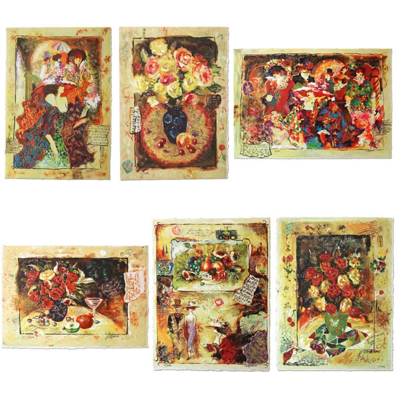 "Rendezvous, Friendship, Pleasures, Red Bouquet, Wine and Roses, Sunshine Roses" is a 5 piece set of limited edition Serigraph on Paper by Sergey Kovrigo. The pieces are individually numbered and hand siged by the artist and come with a letter of authenticity. Measures approximately 0" x 0" (each).