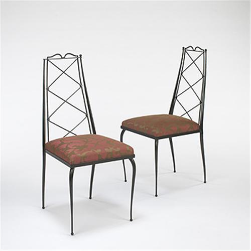 Rene Prou, attribution side chairs, pair France, c. 1940 iron, upholstery 16"w x 16.5"d x 37"h