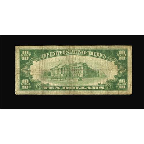 <B>Reno, NV </B></I>- $10 1929 Ty. 1 <B>First NB</B></I> Ch. # 7038<BR> This bank issued under two titles, with all of its 1929 emissions coming under this, the second title. This is not the usual type and denomination encountered from here, with most of the 1929 population coming from a number of $5 Type 2 sheets that were cut up some years ago. A touch of light soiling and even wear are noticed on this <B>Fine </B></I>example.<BR><BR><b>Shipping:</b> Coins & Currency (<a target="_blank" href="http://www.heritageauctions.com/common/shipping.php">view shipping information</a>)