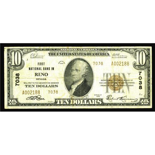 Reno, NV - $10 1929 Ty. 2 First NB Ch. # 7038A problem Reno, NV